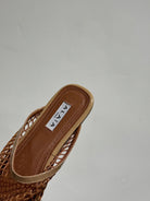 ALAIA FLAT MULES IN COPPER BROWN MESH FISHNET
