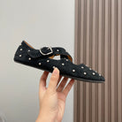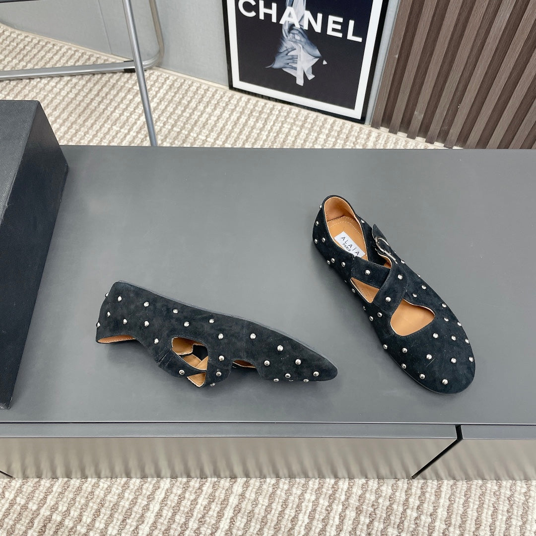 Alaia 2025 Criss Cross With Stud Ballet Flats Black Suede 293205