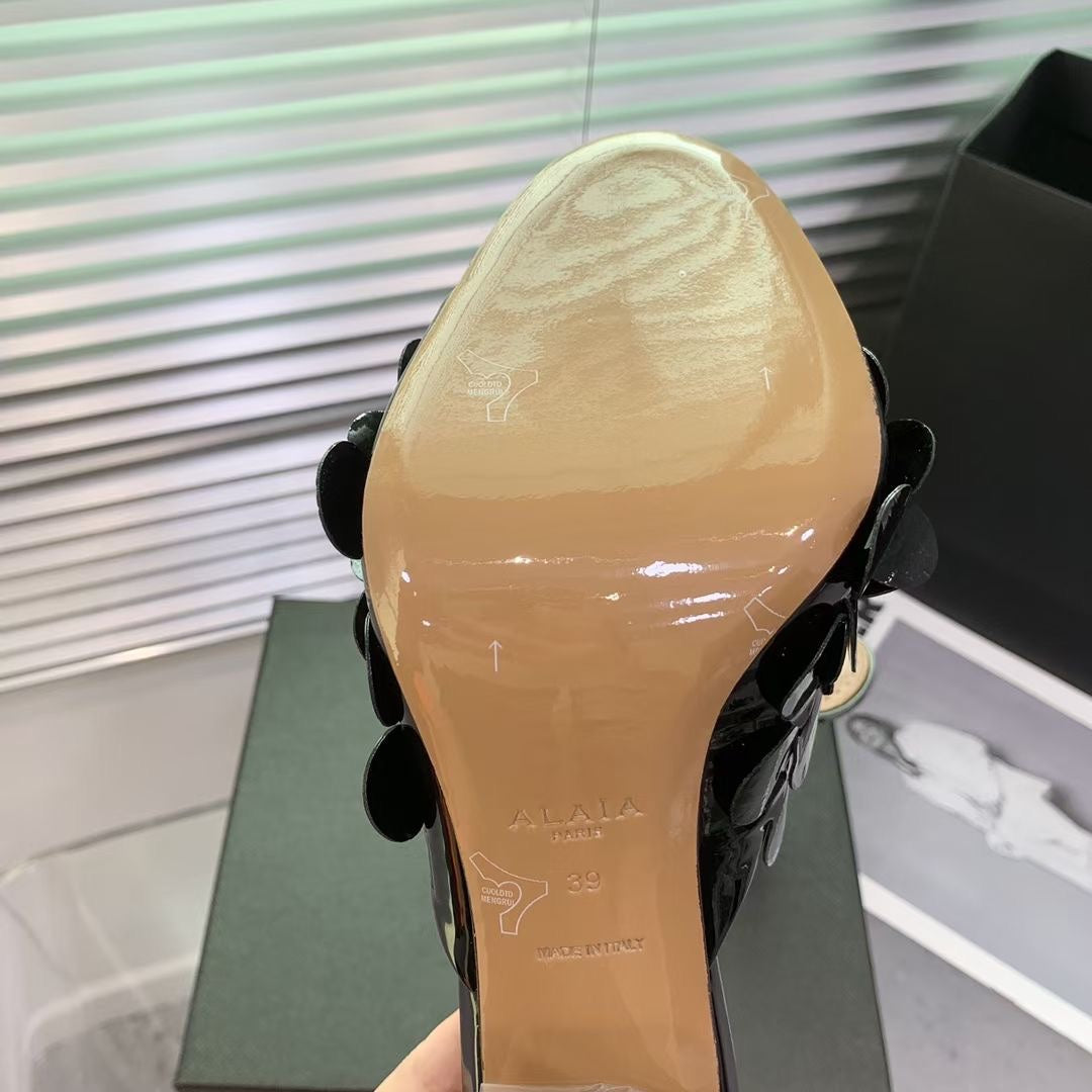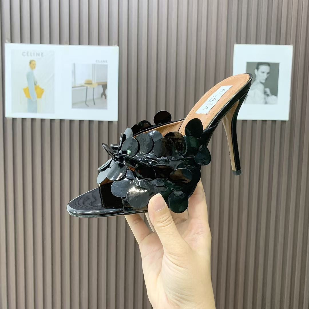 Alaia Confetti Leather Mules Glossy Black Sheepskin Cowhide 293163
