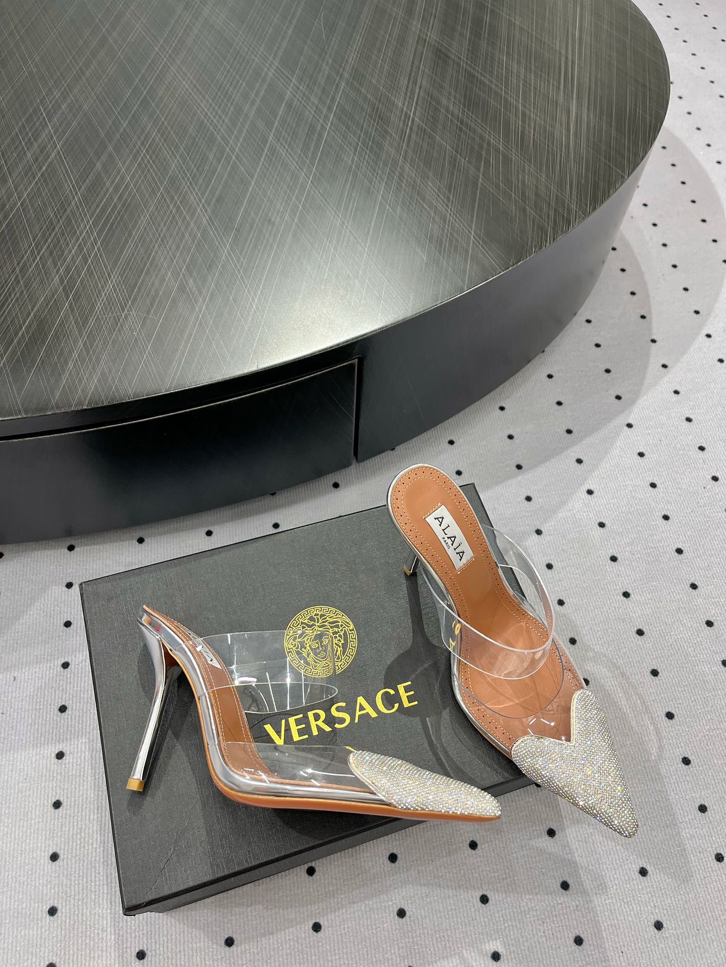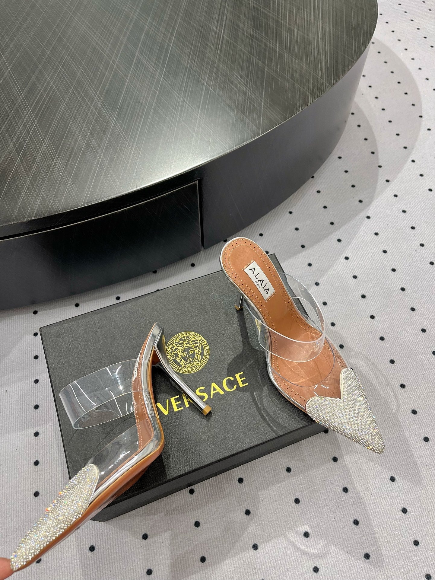 ALAIA Le Coeur Mules White With Rhinestones Lambskin 954821