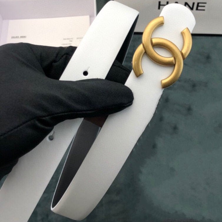 CC WOMEN'S BELT 3.0CM LEATHER WHITE BUCKLE GOLD CONVEX
