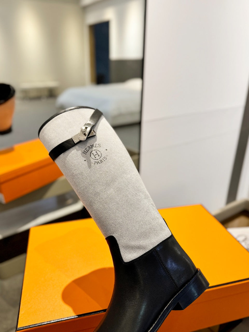 HM Jumping Boot 20mm Black Mix Grey White Cowhide And Tech Fabric 961653