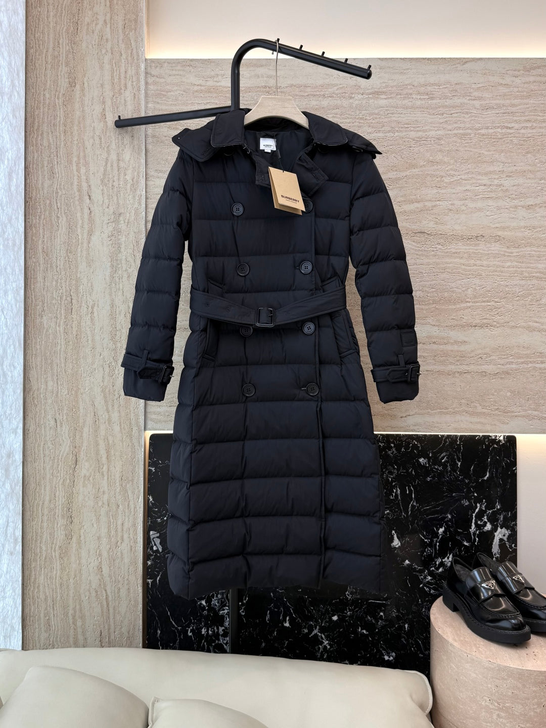 Burberry 25 Double-Breasted Slim Fit Long Down Jacket Black Polyester