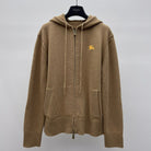 Burberry 25 Zipper-Up Hooded Knit Cardigan Beige Wool Cashmere