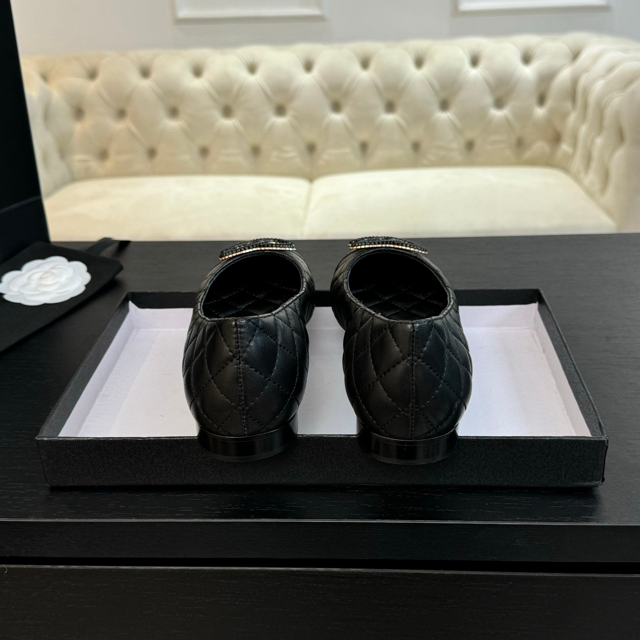 ballet flat black quilted lambskin large black cc logo