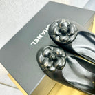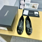 CC 25P Ballet Flat Flower Black Calfskin Patent Calfskin