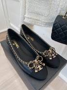 CC Ballet Flats 25mm Black Bow Tie Chain Lambskin