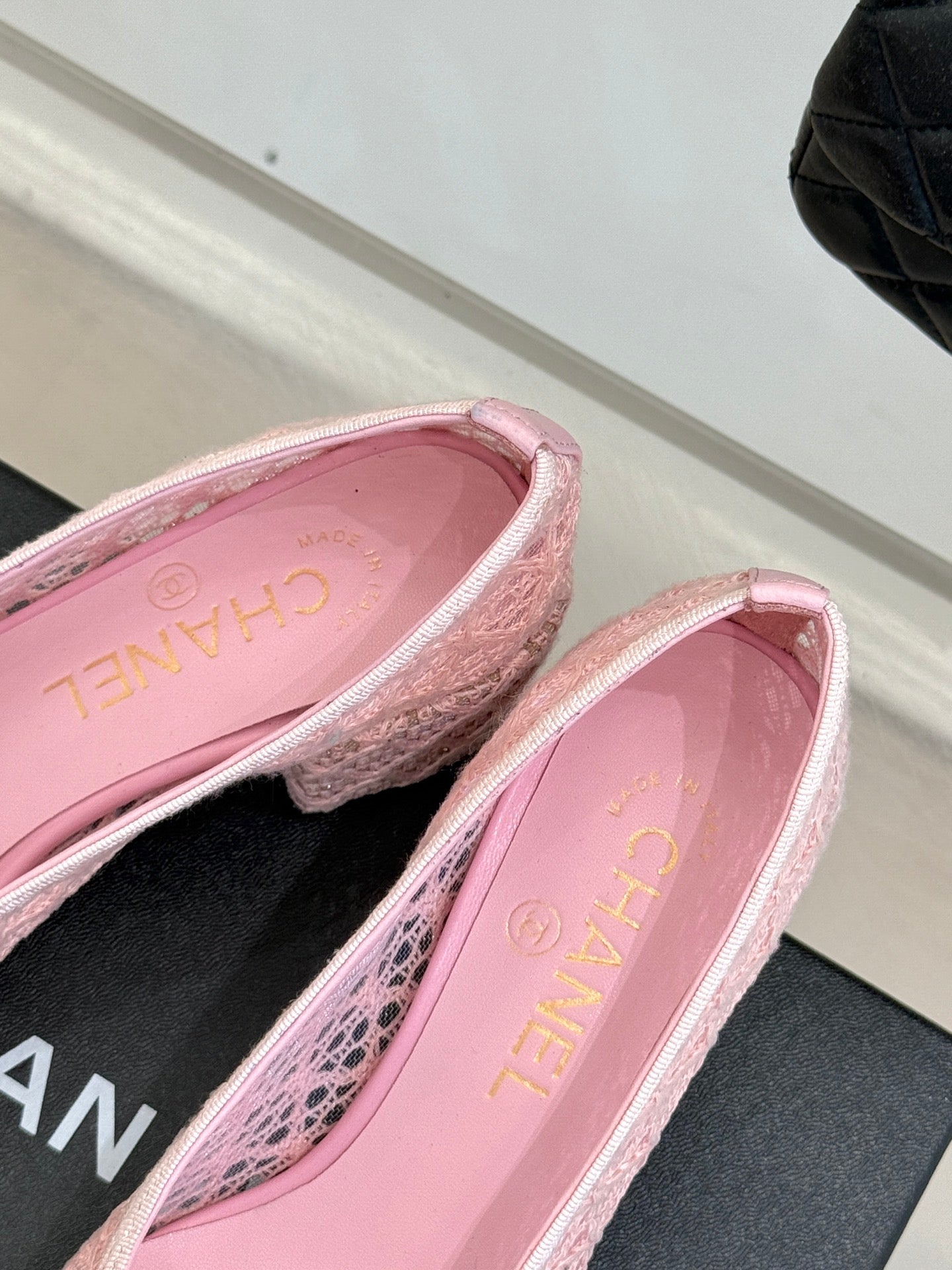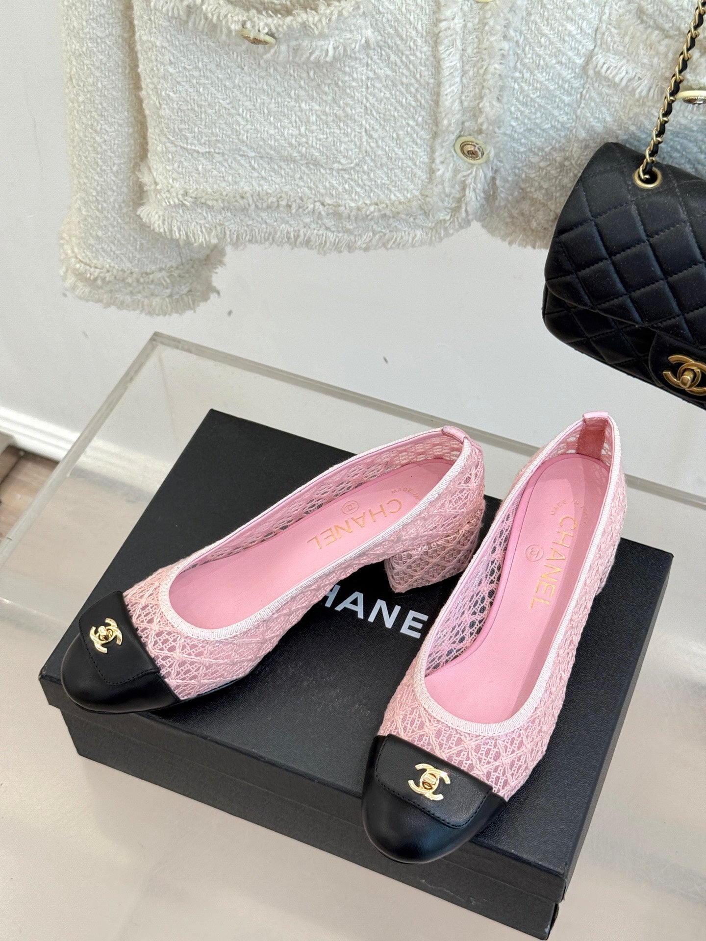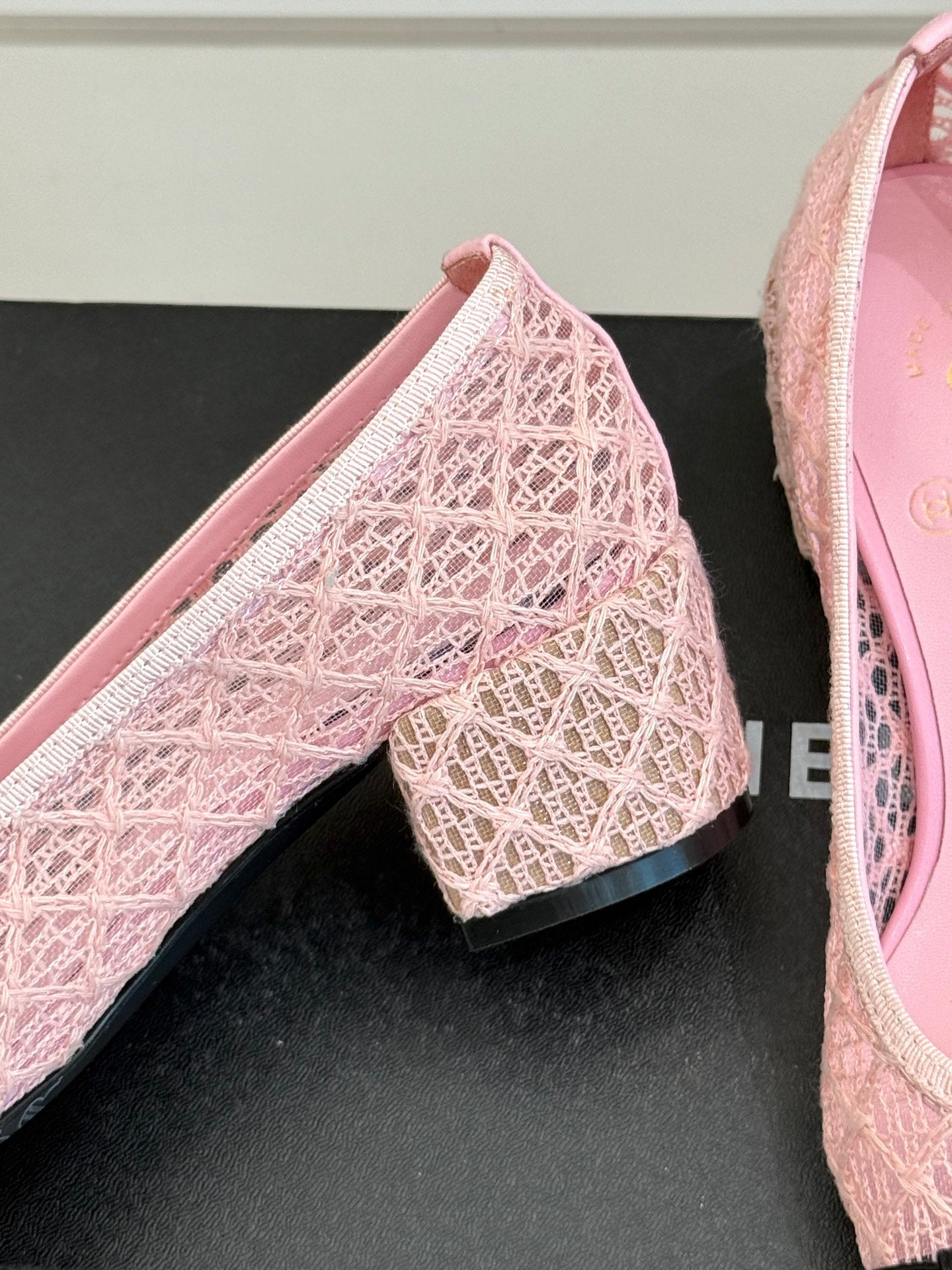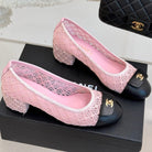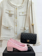 Chanel 25 Ballet Flat 50mm Pink Black Woven Lambskin 473052