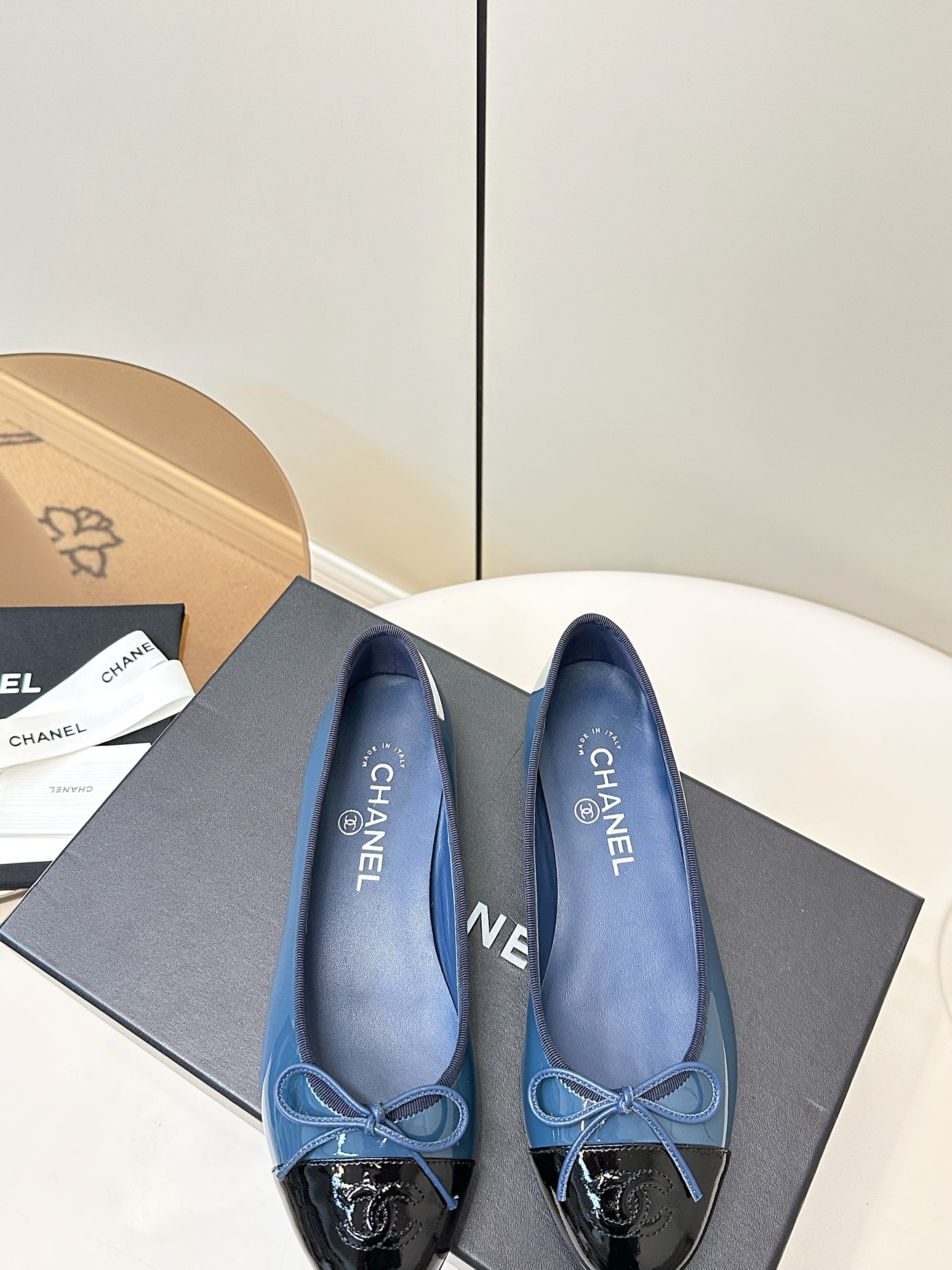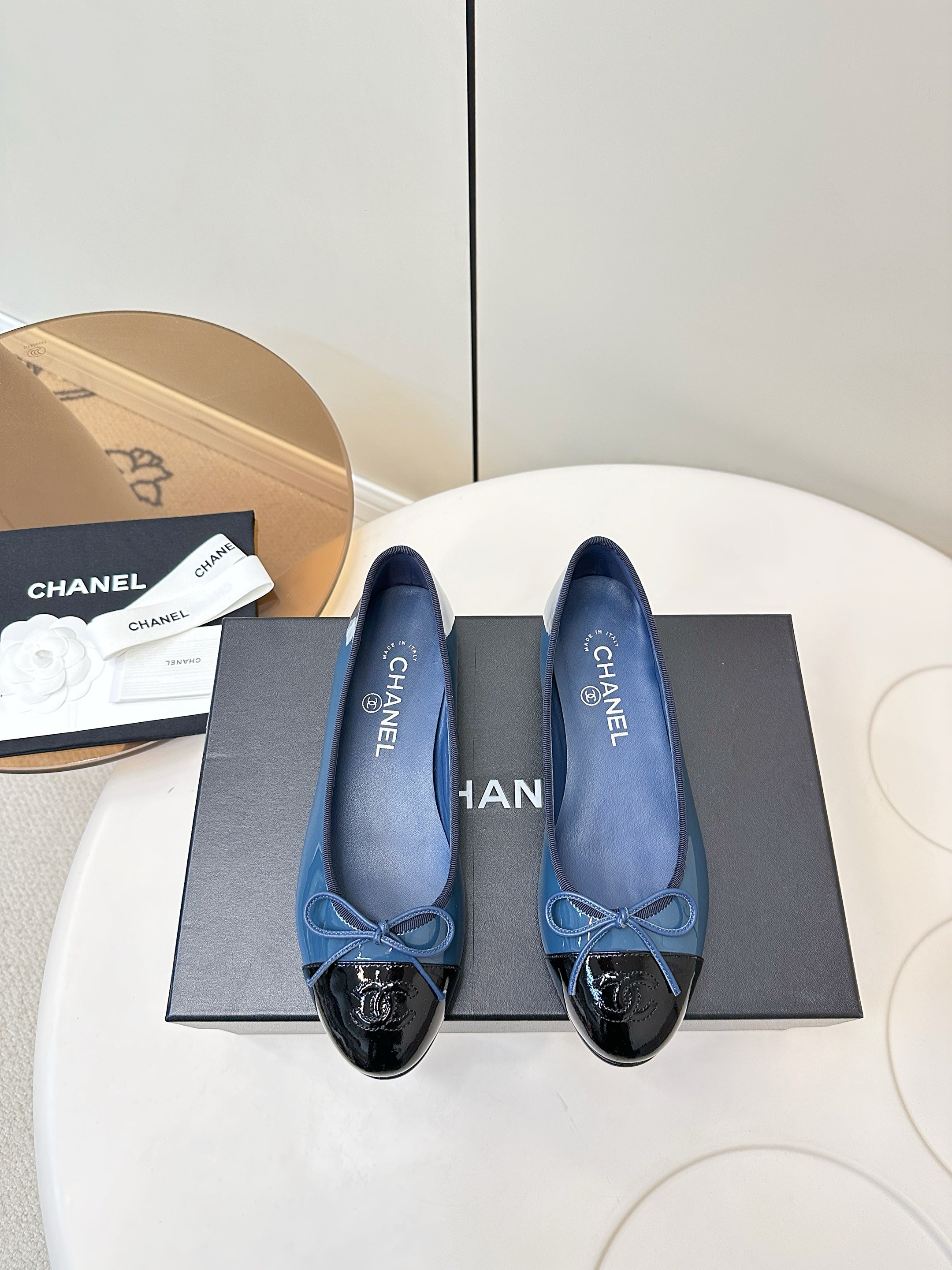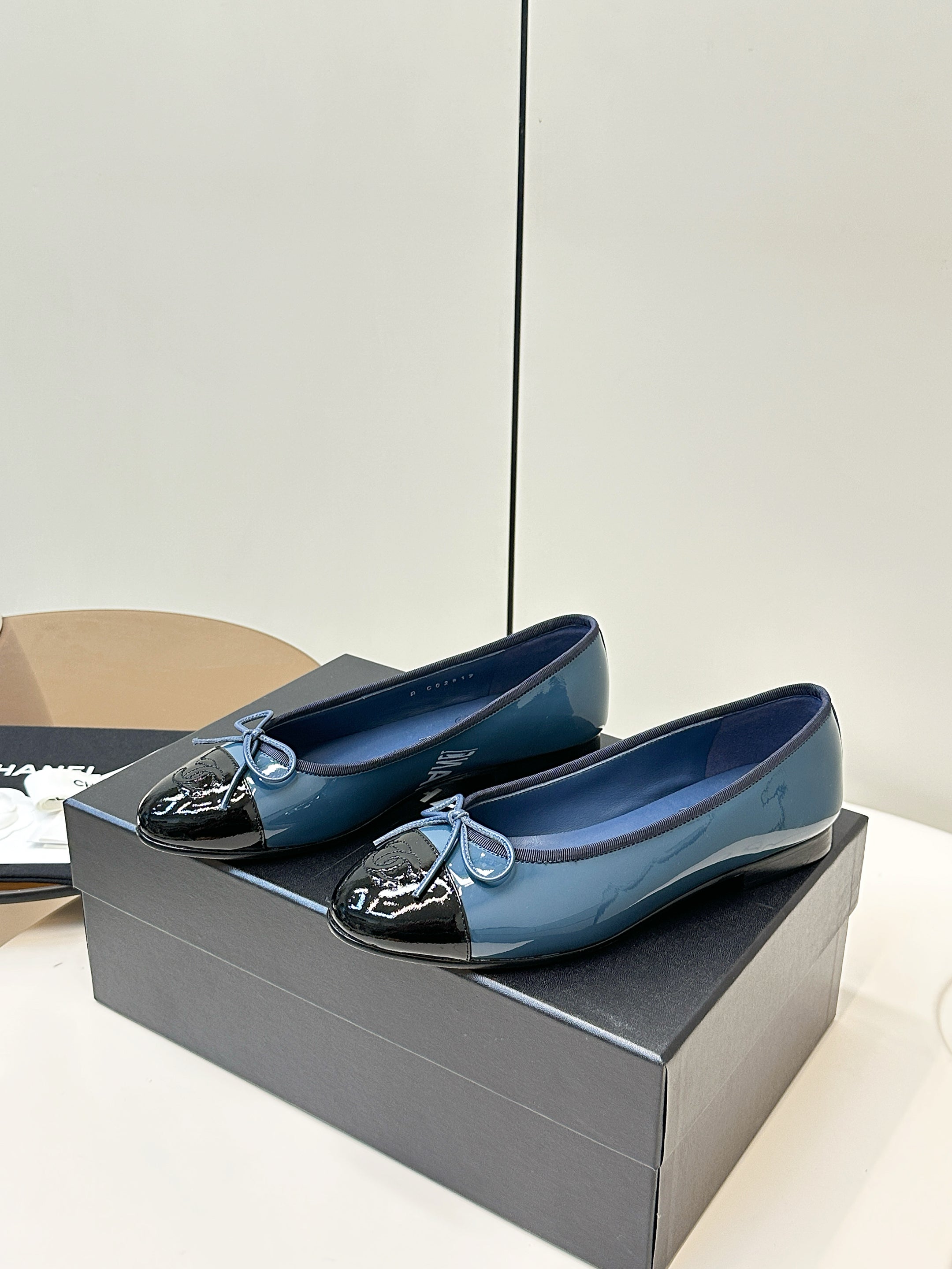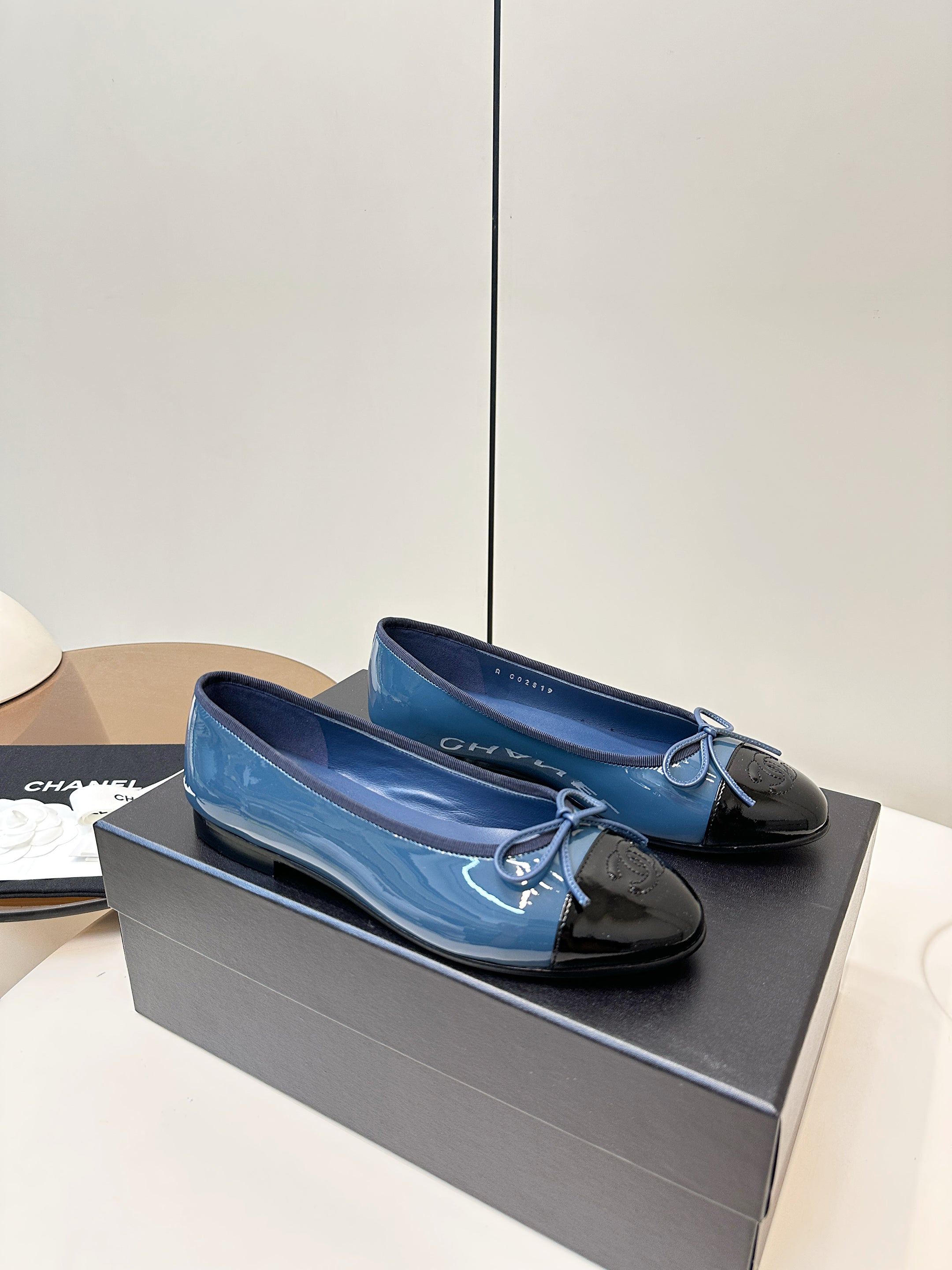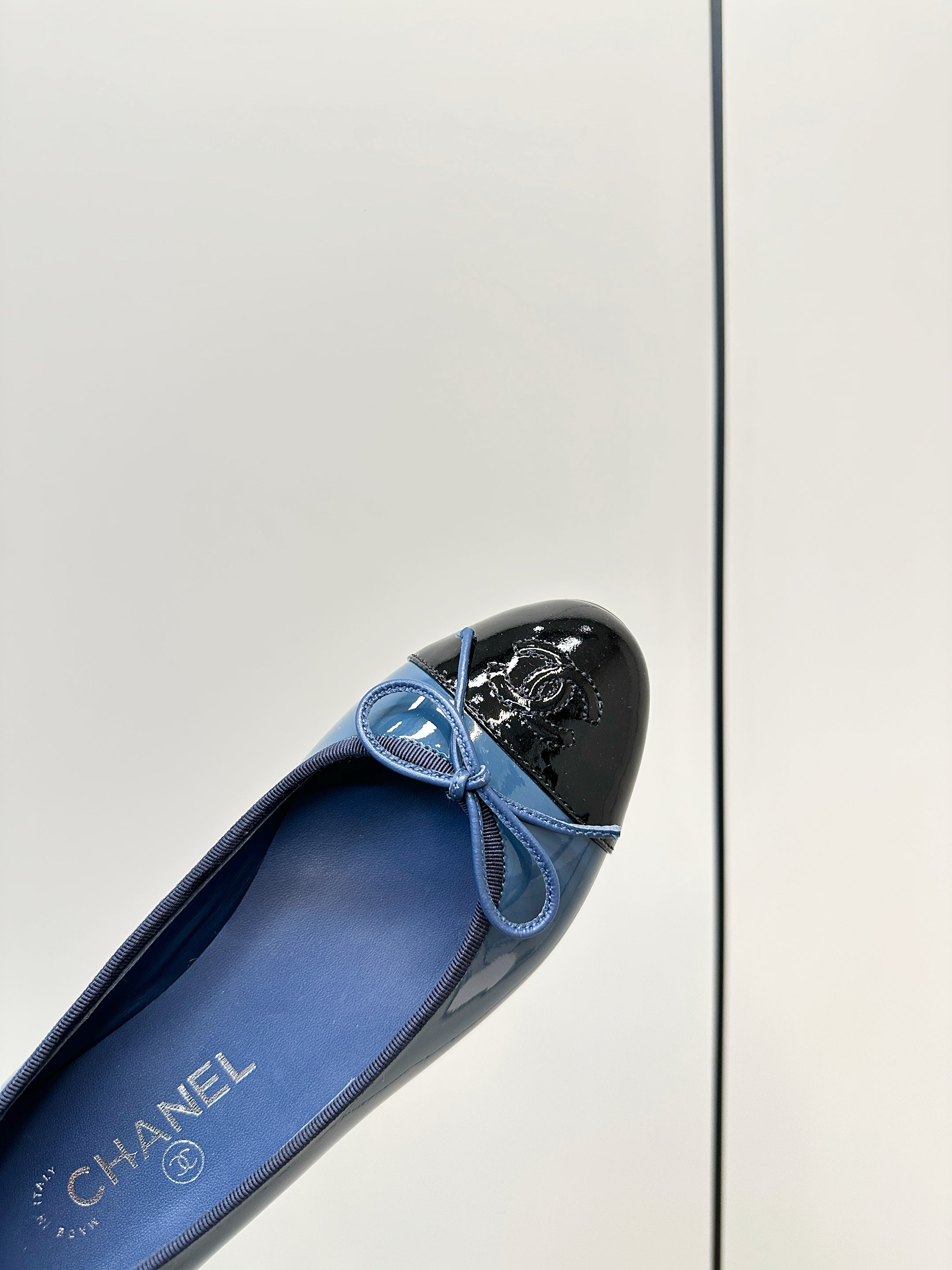 Chanel 25 Ballet Flat Blue Black Patent Leather 469254