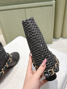 CC 25 Short Boot Black Denim Fabric Calfskin 515267