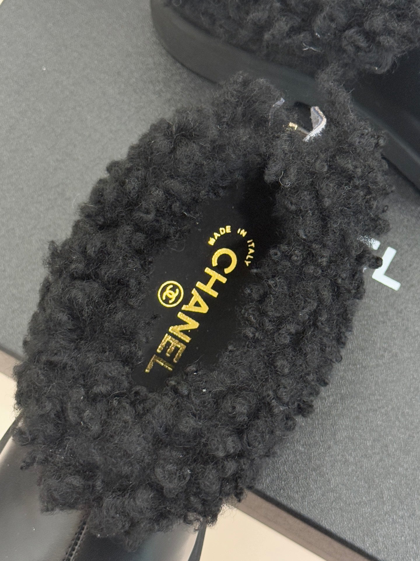 CC 25s Furry Snow Boots Black Leather Wool 512066