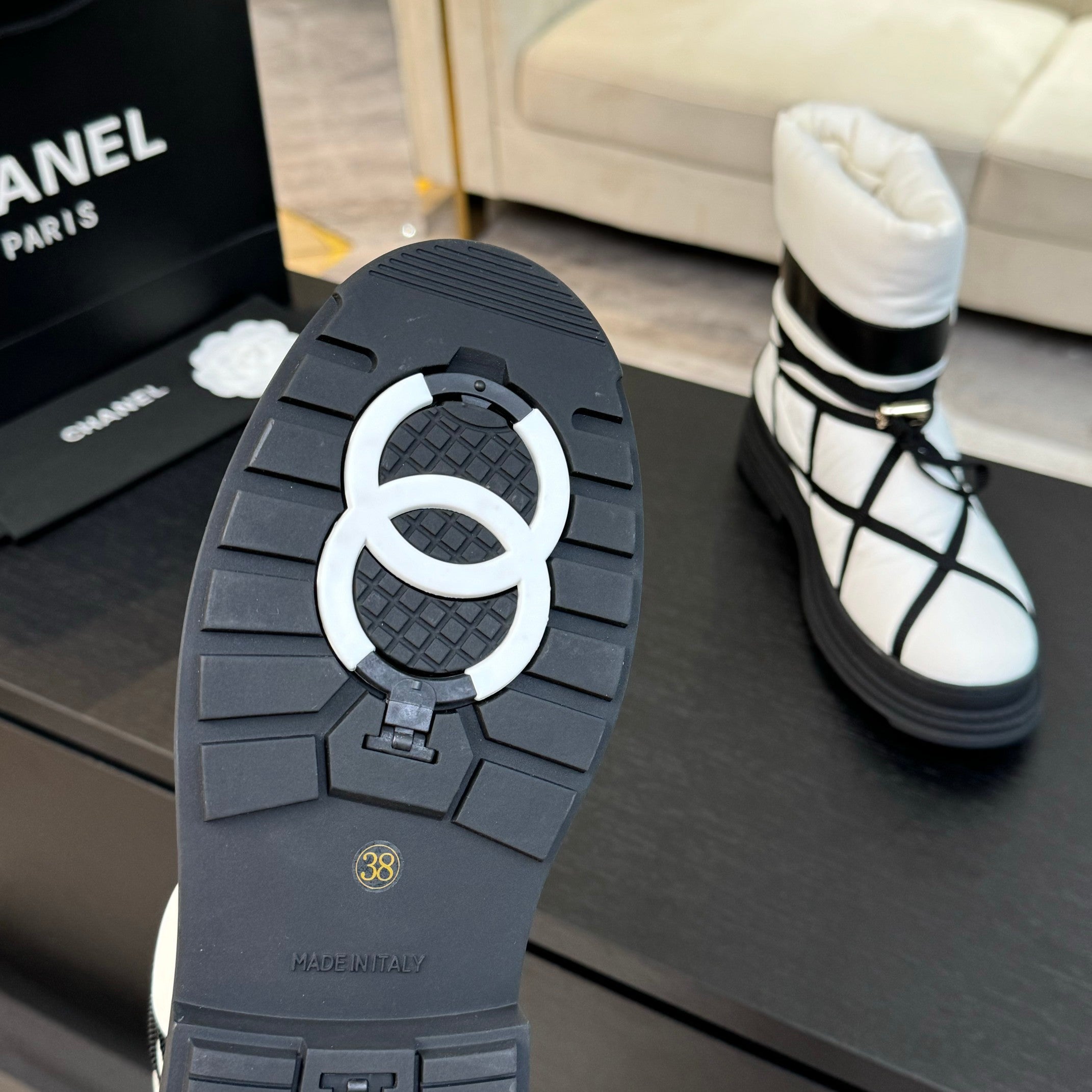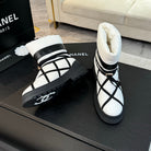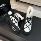 CC Ankle Boots White Mix Black Wind Cloth Quilted