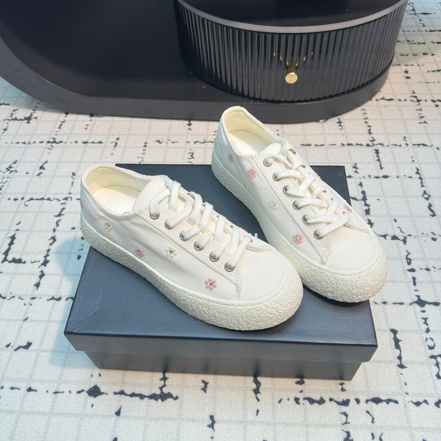 CC Low Sneaker 30mm White With Small Flowers Cavas Fabric