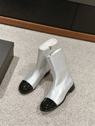 CC Short Boot Silver Metalic Lambskin Black Patent Calfskin