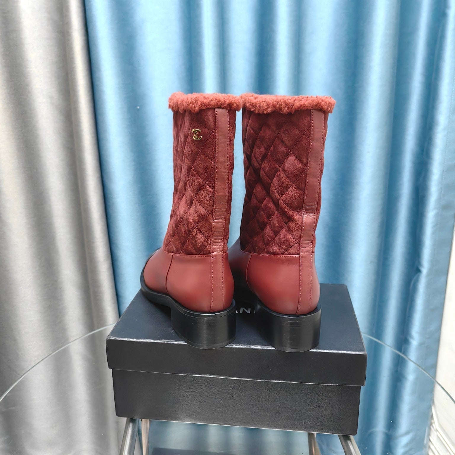 CC Short Boots Burgundy Suede Lining Wool And Lambskin