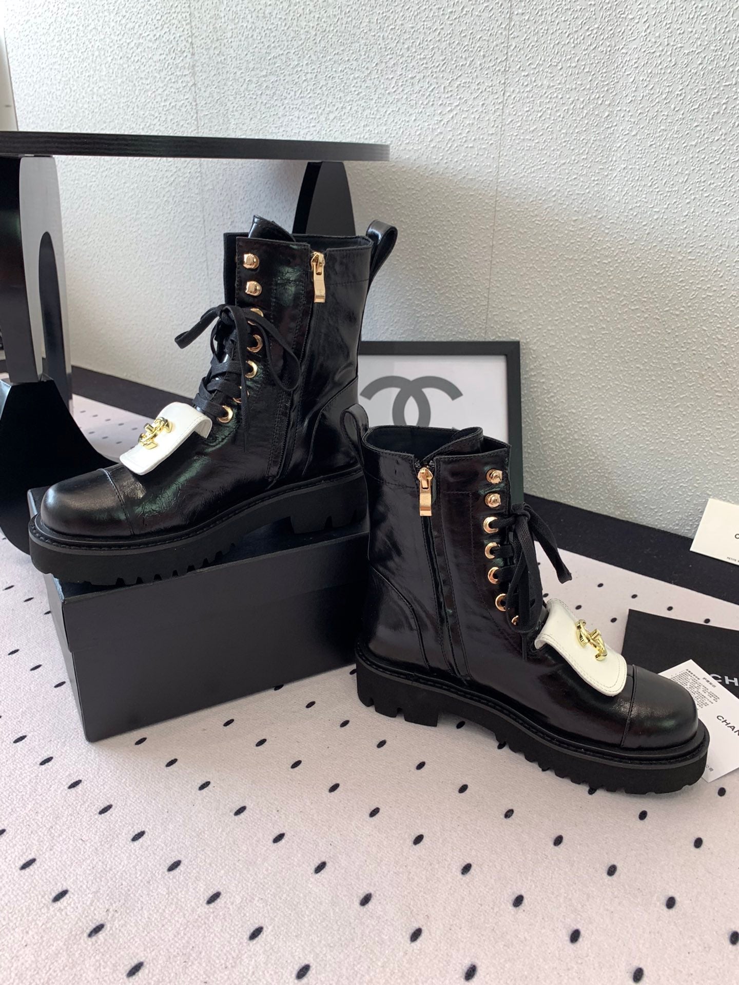 CC Short Boots In Black Mix White Logo Print Lambskin 938059