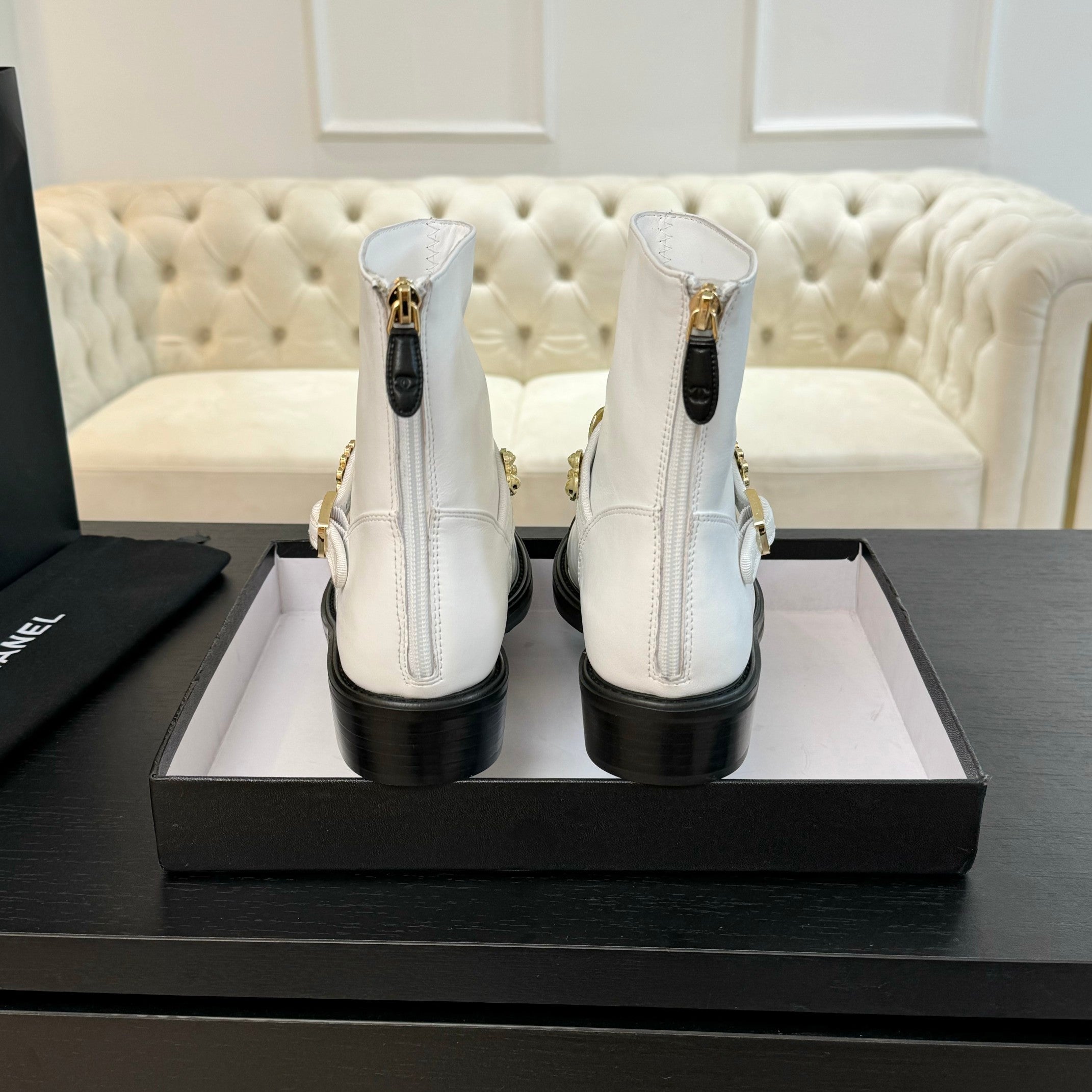CC Short boots White Cowhide Mix Fabric Denim
