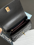 Coco Handle Flap Bag 19cm Black Grained Calfskin Gold Hardware