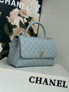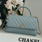 coco handle medium 29cm sky blue quilted caviar leather gold hardware