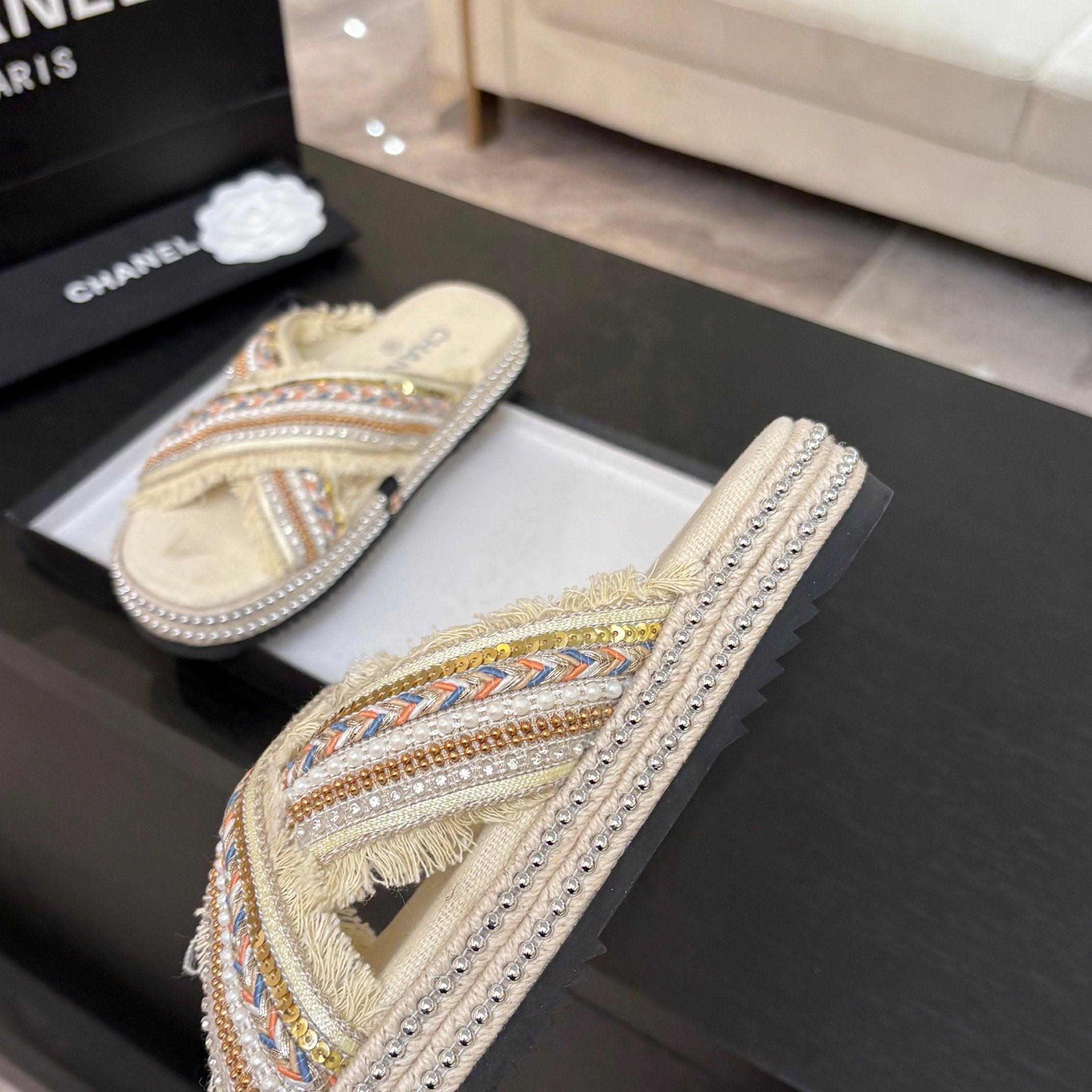 CC 25C Thick-Soled Slipper In Black Denim Navajo White Fabric 213233