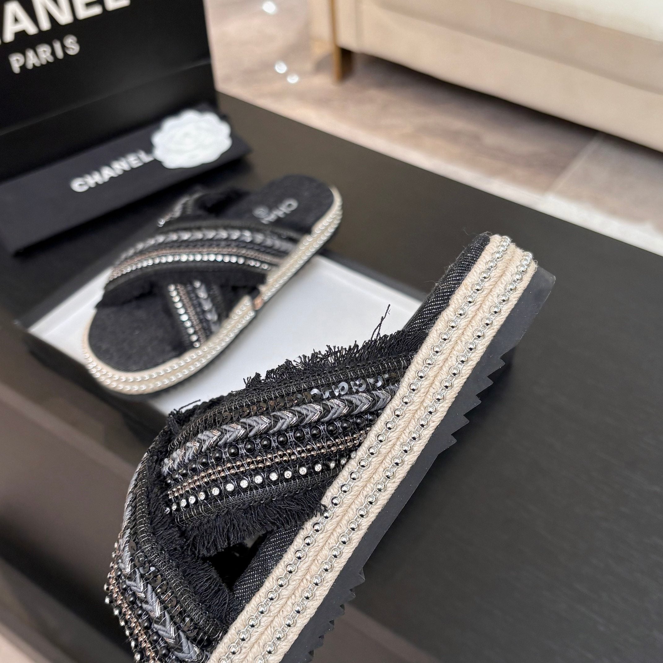 CC 25C Thick-Soled Slipper In Black Denim Space blue Fabric 213231