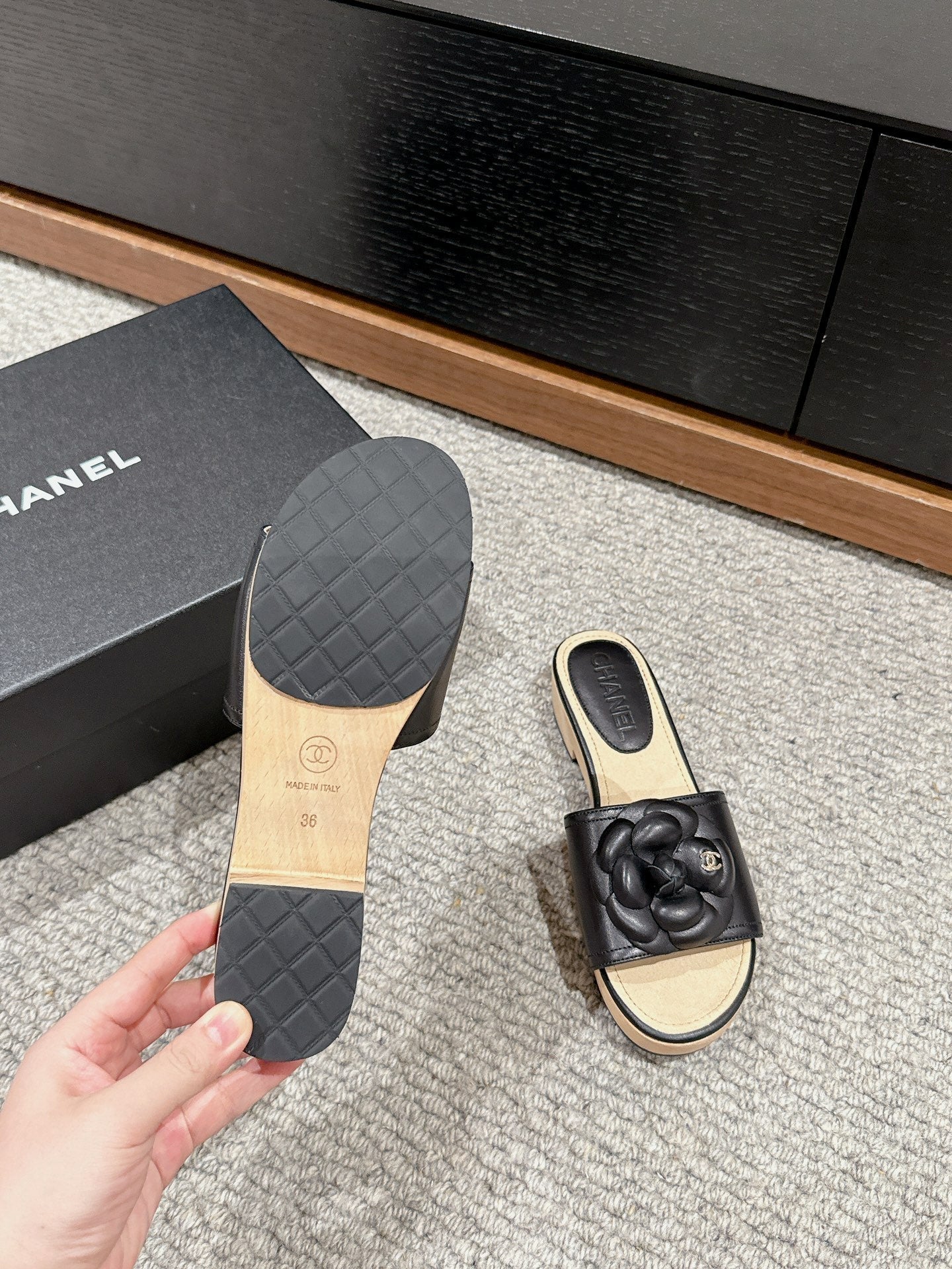 cc sandal flower black calfskin
