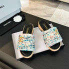 CC Slippers White Black And Blue Red Wool And Calfskin