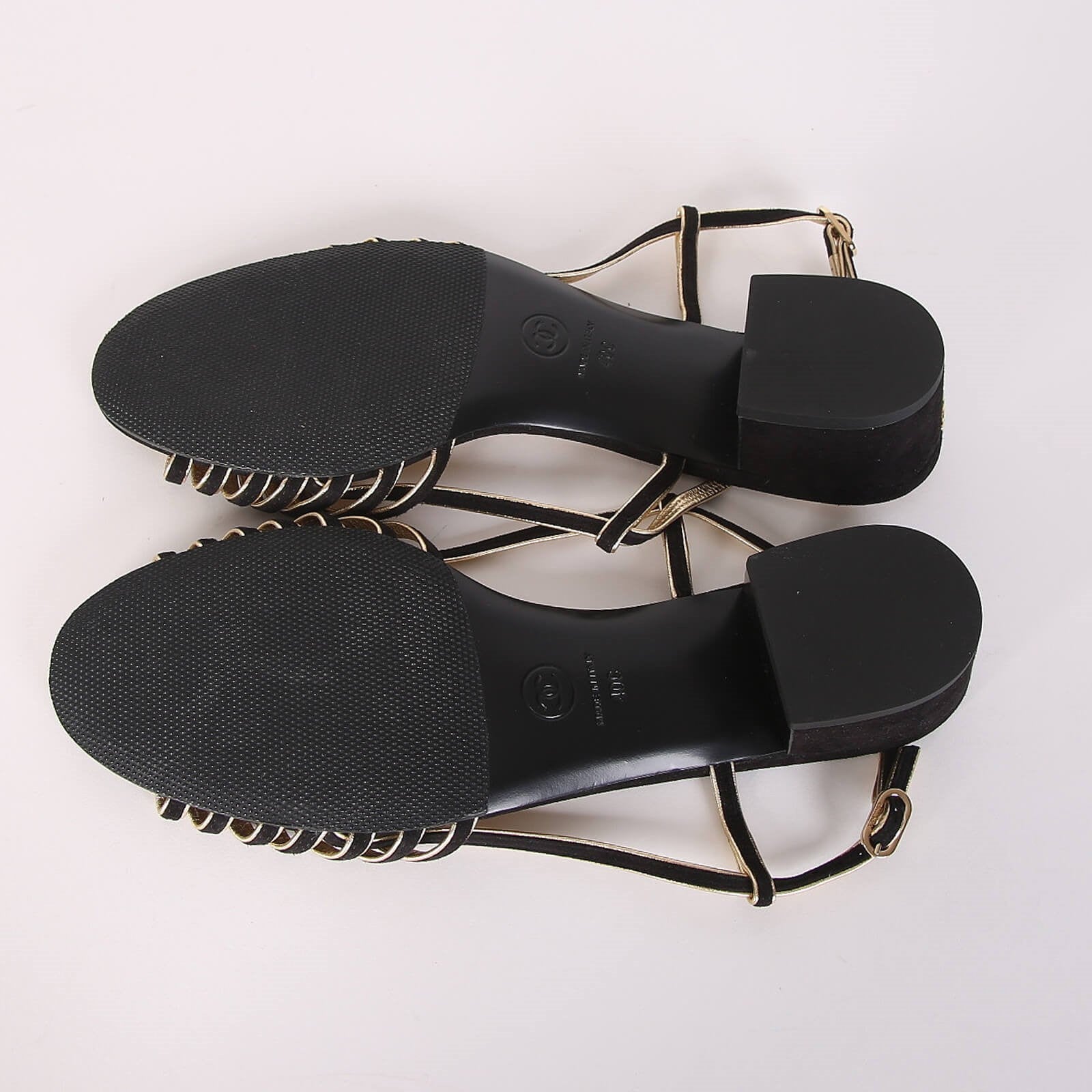 CC Strappy Low Heel Sandals 35mm Black Gold Metallic Suede