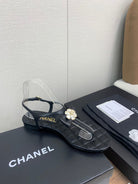 CC THONG SANDAL IN BLACK LAMBSKIN WITH PEARL FLOWER