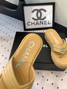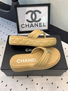 CC Thong Slippers In Dark Beige Lambskin 147050