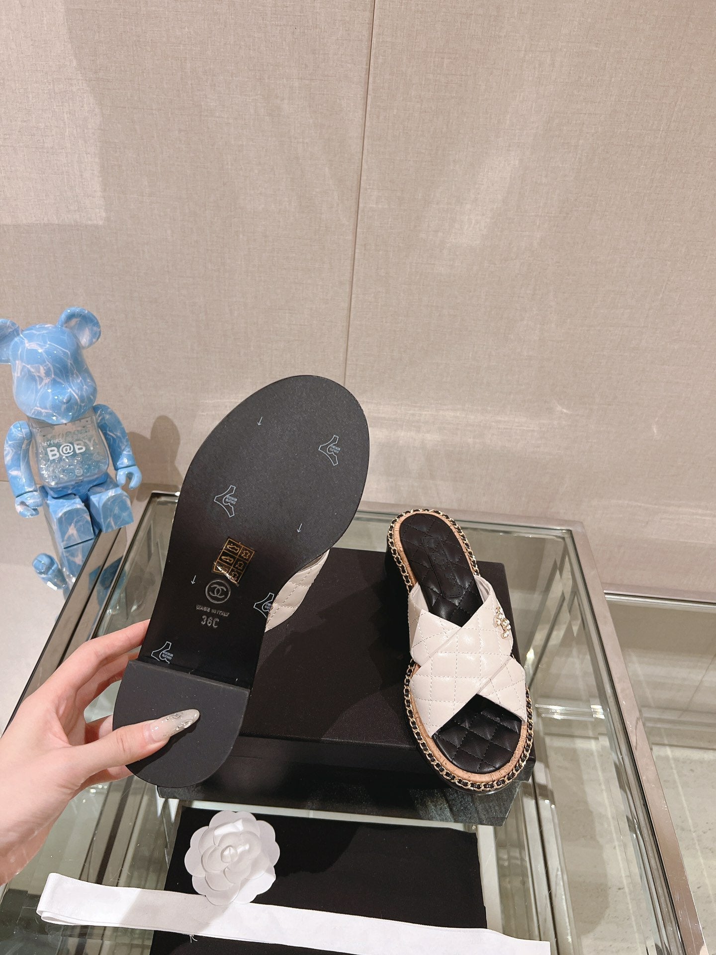 cross slippers 50 white black quilted lambskin