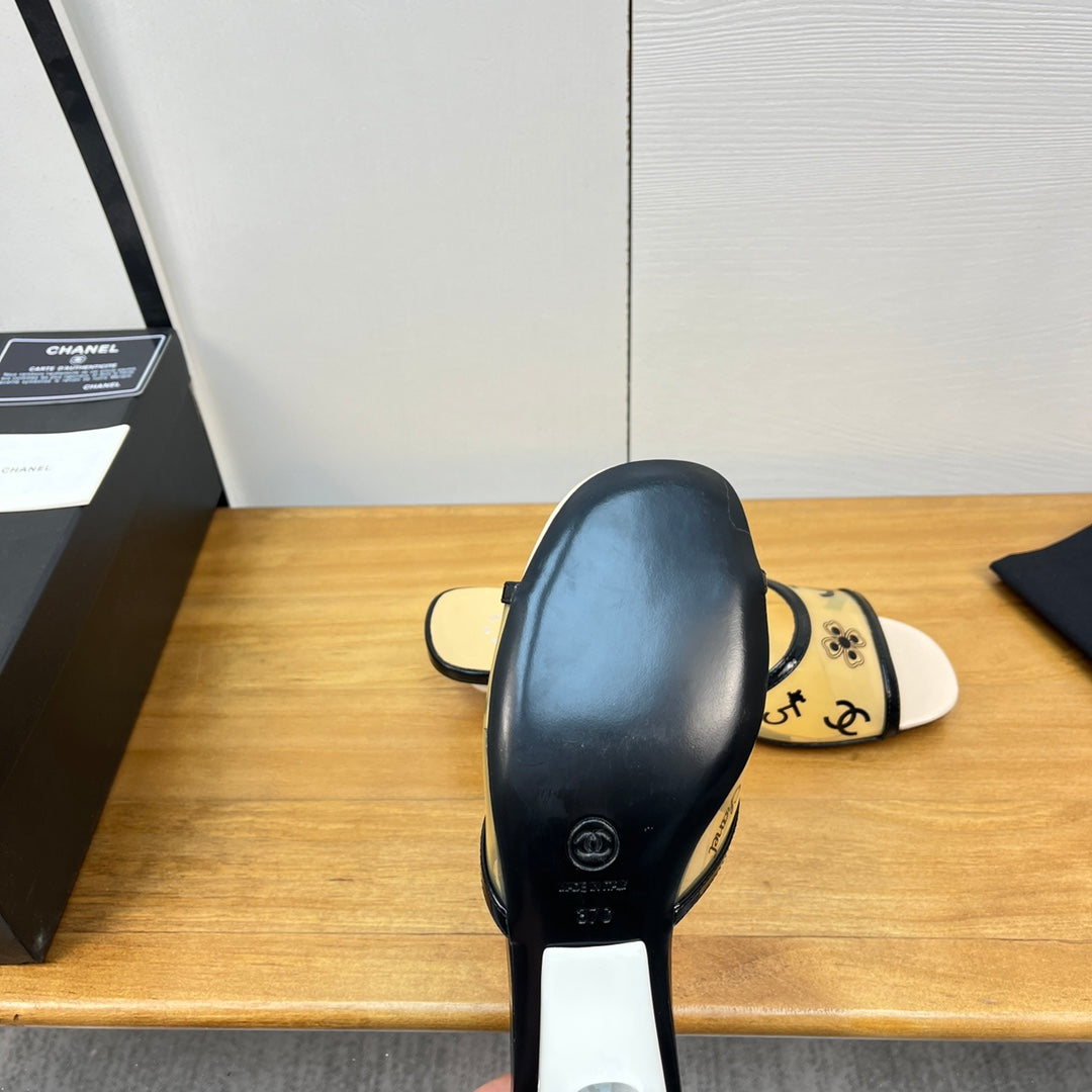 mule sandal 45 beige black pcv and calfskin