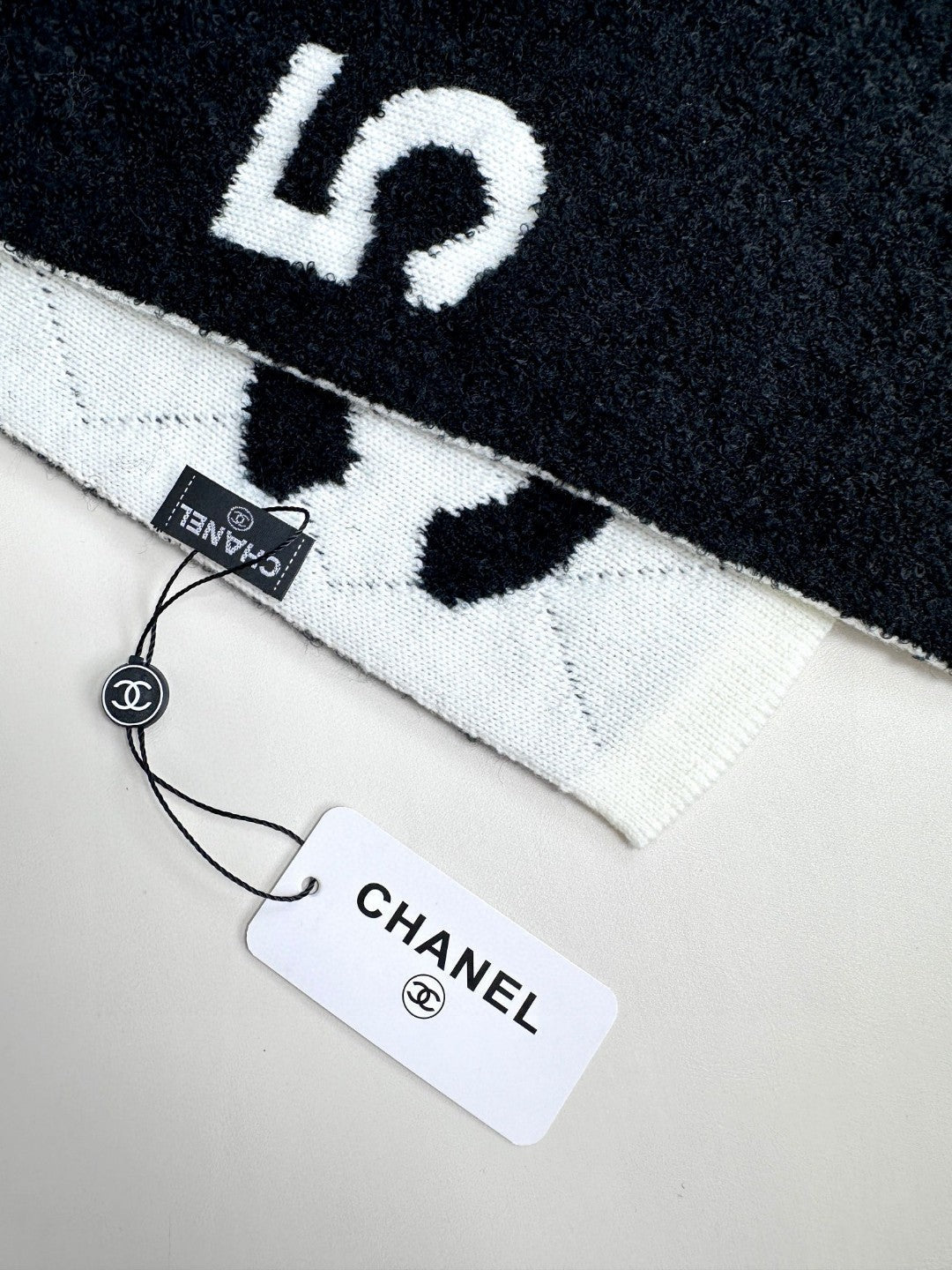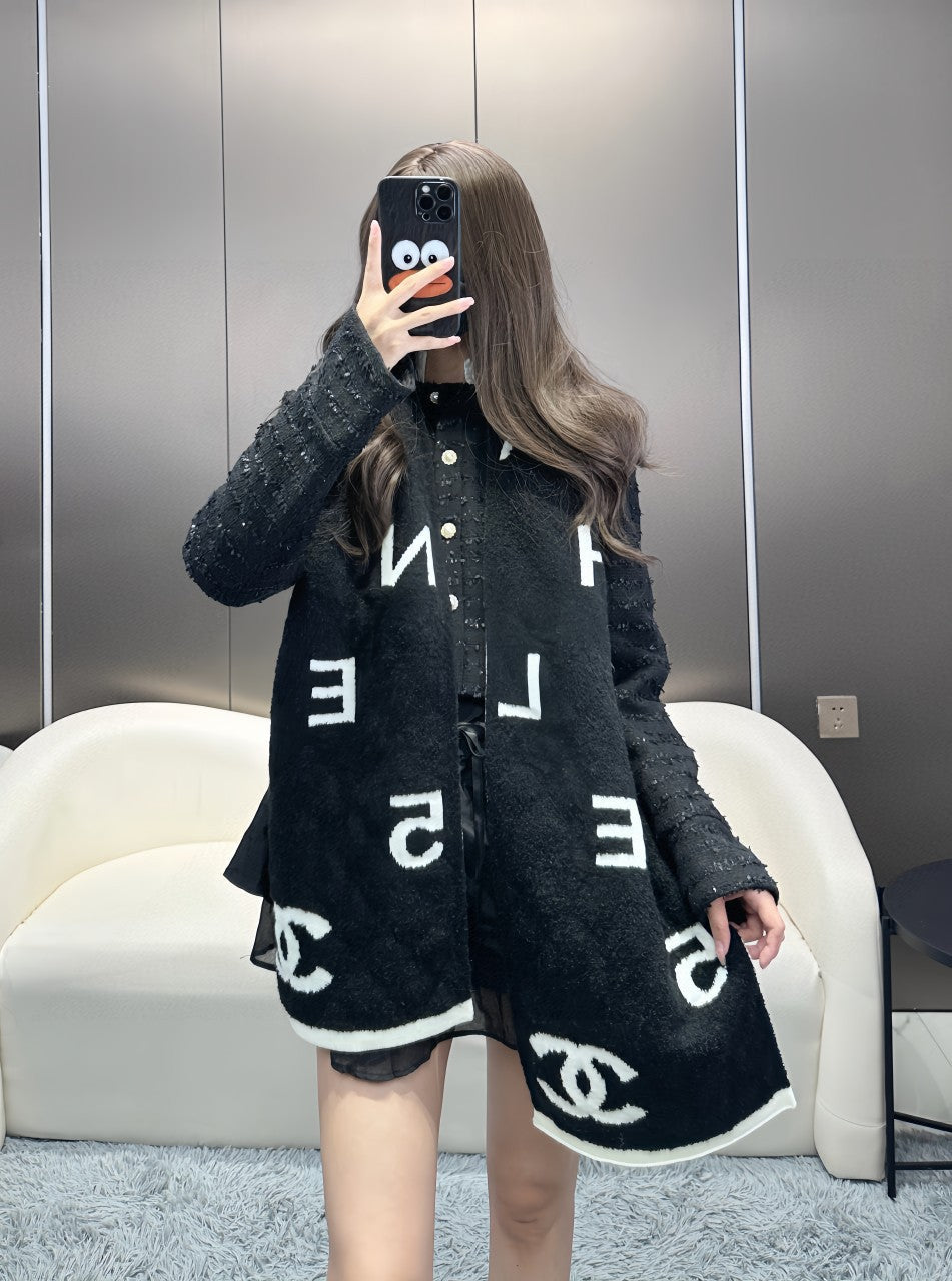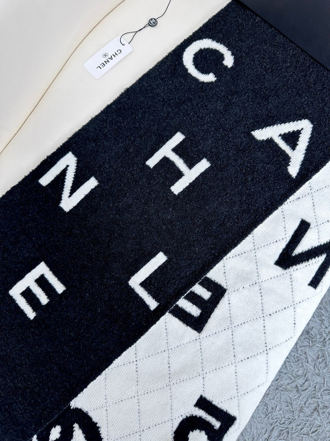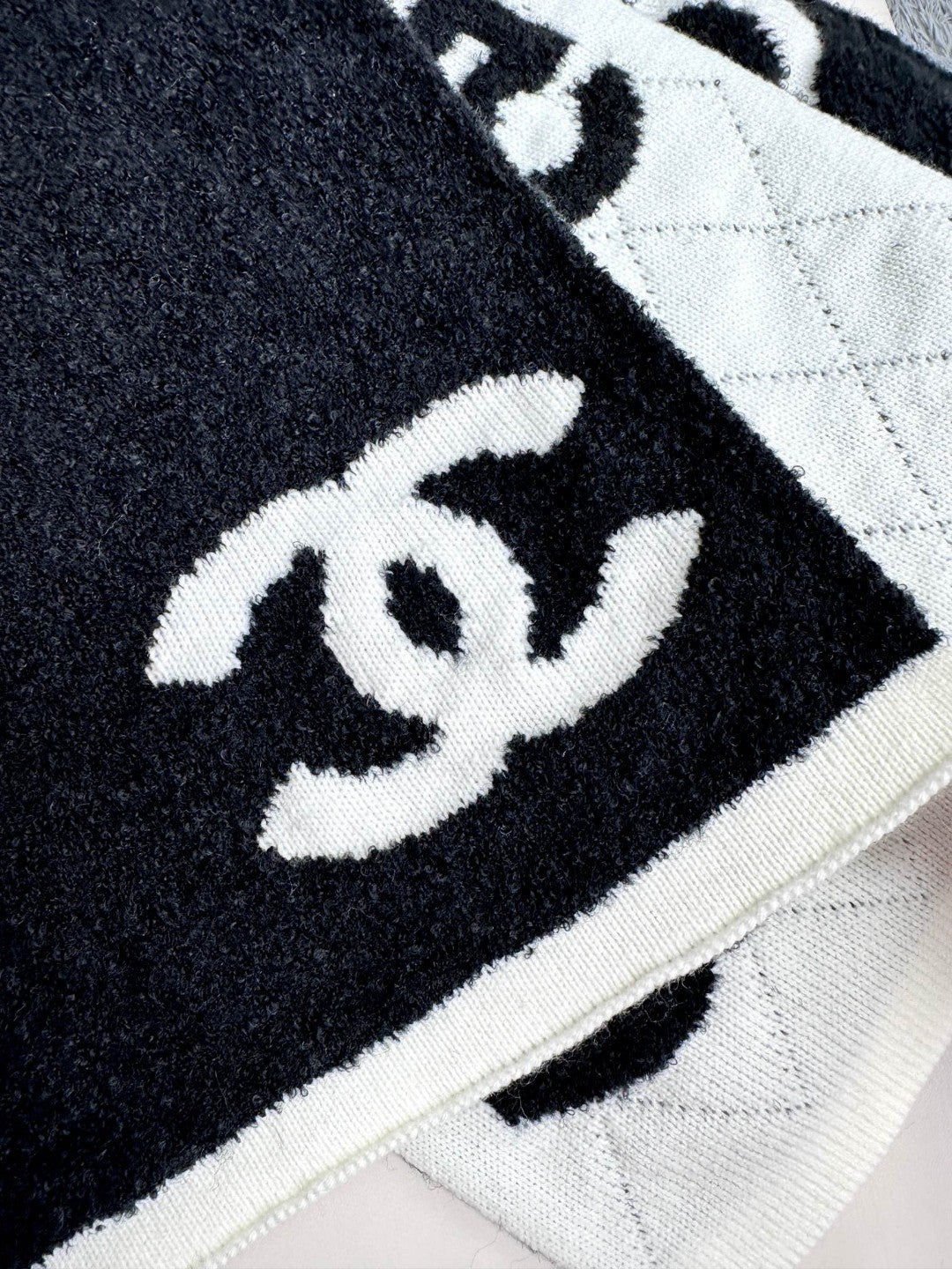 CC Scarf 180 CM In Black Mix White Cashmere And Wool Mix Silk 407255