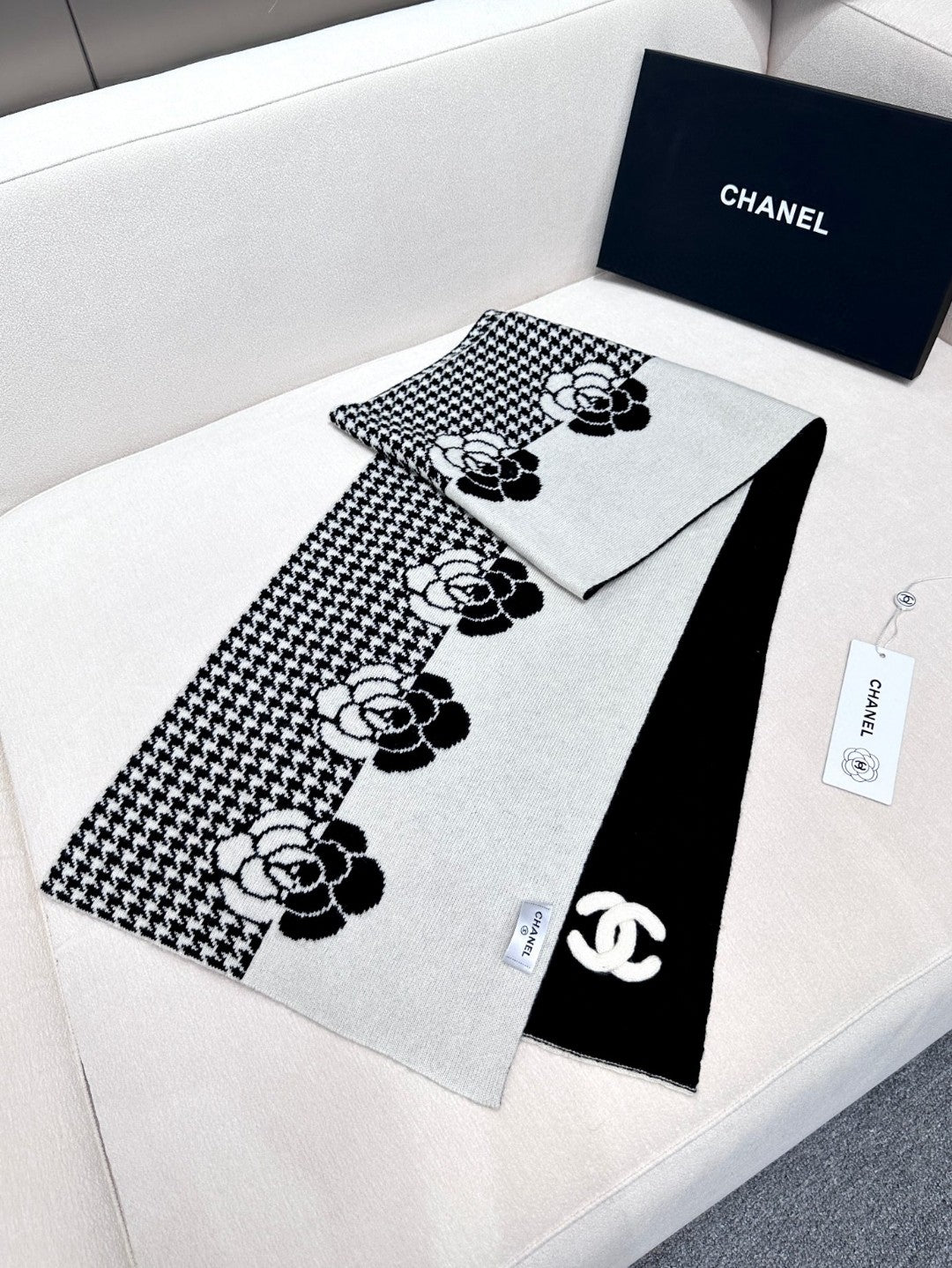 CC Scarf 180 CM In Black Mix White Cashmere Wool 411563