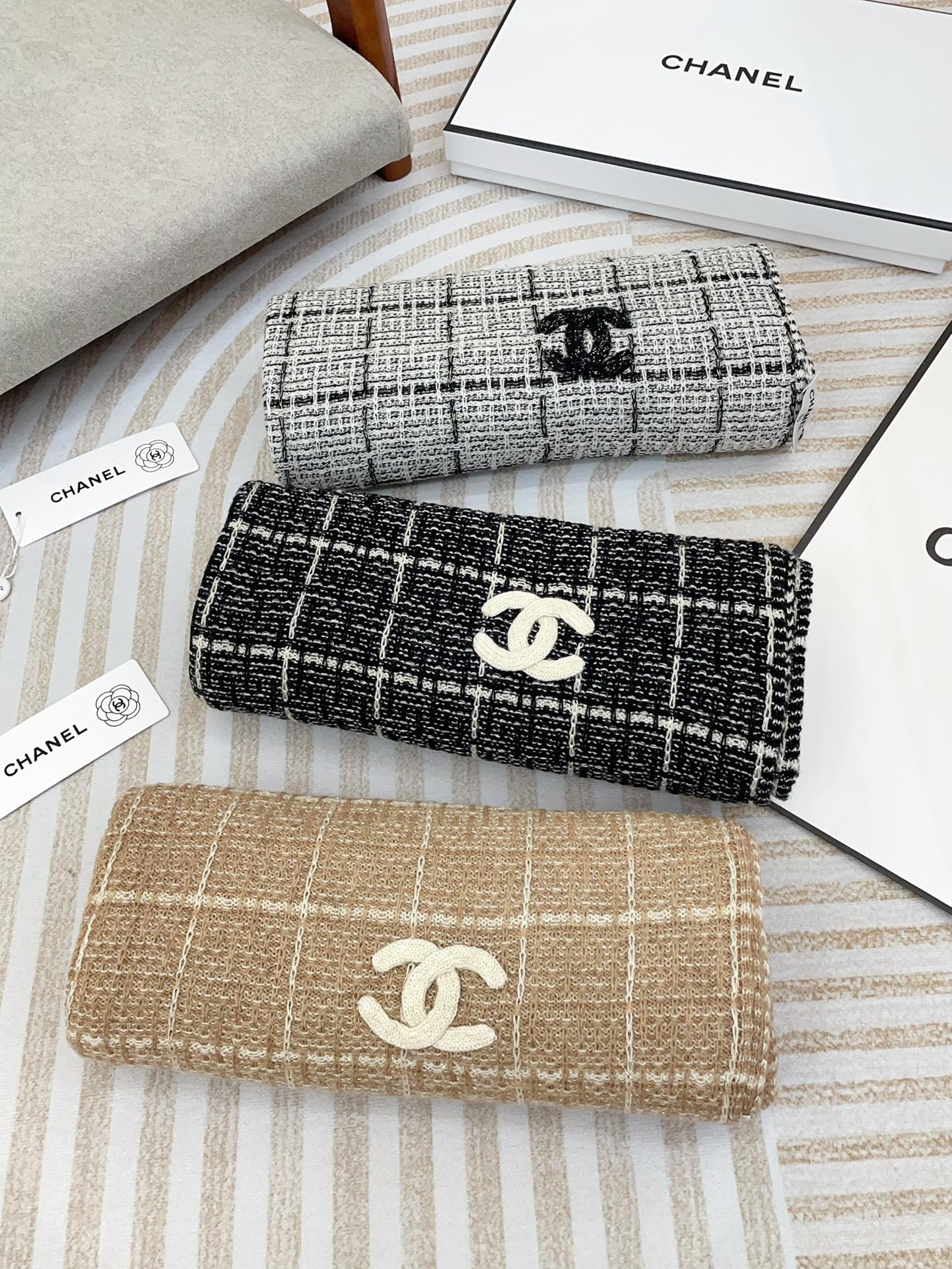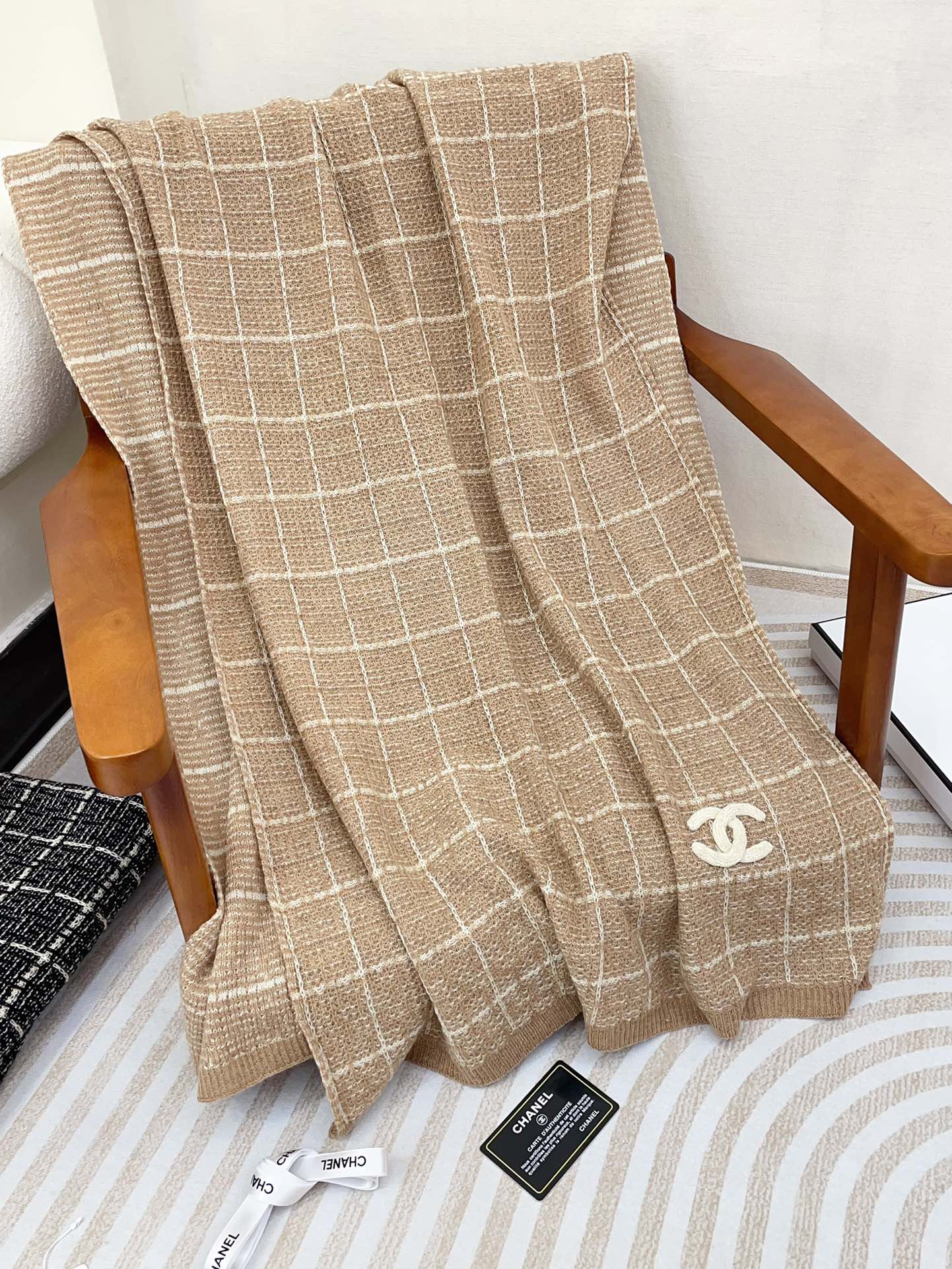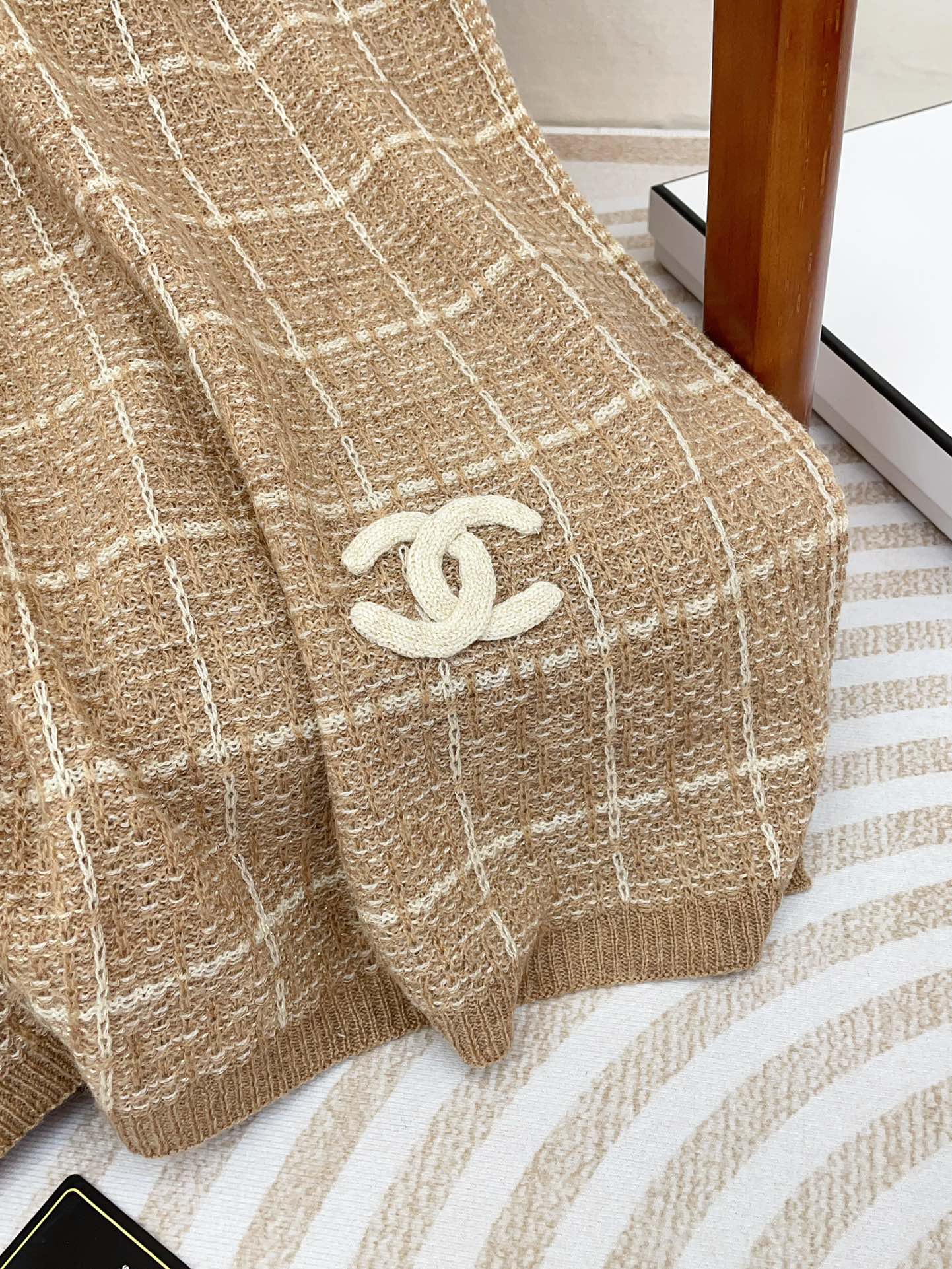 CC Scarf 180 CM In Light Brown With White Stripes Cashmere 415179