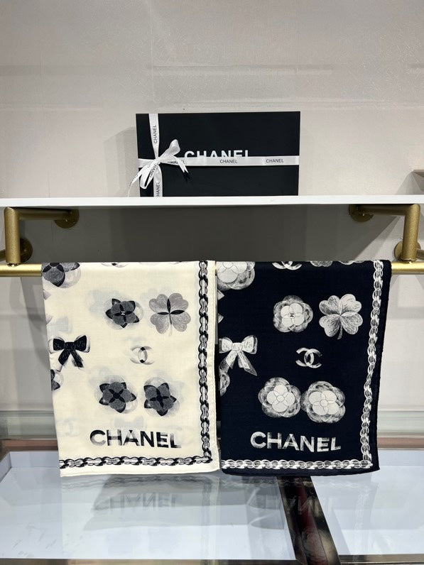 CC Scarf 185 CM In Black White Cashmere Silk 413590