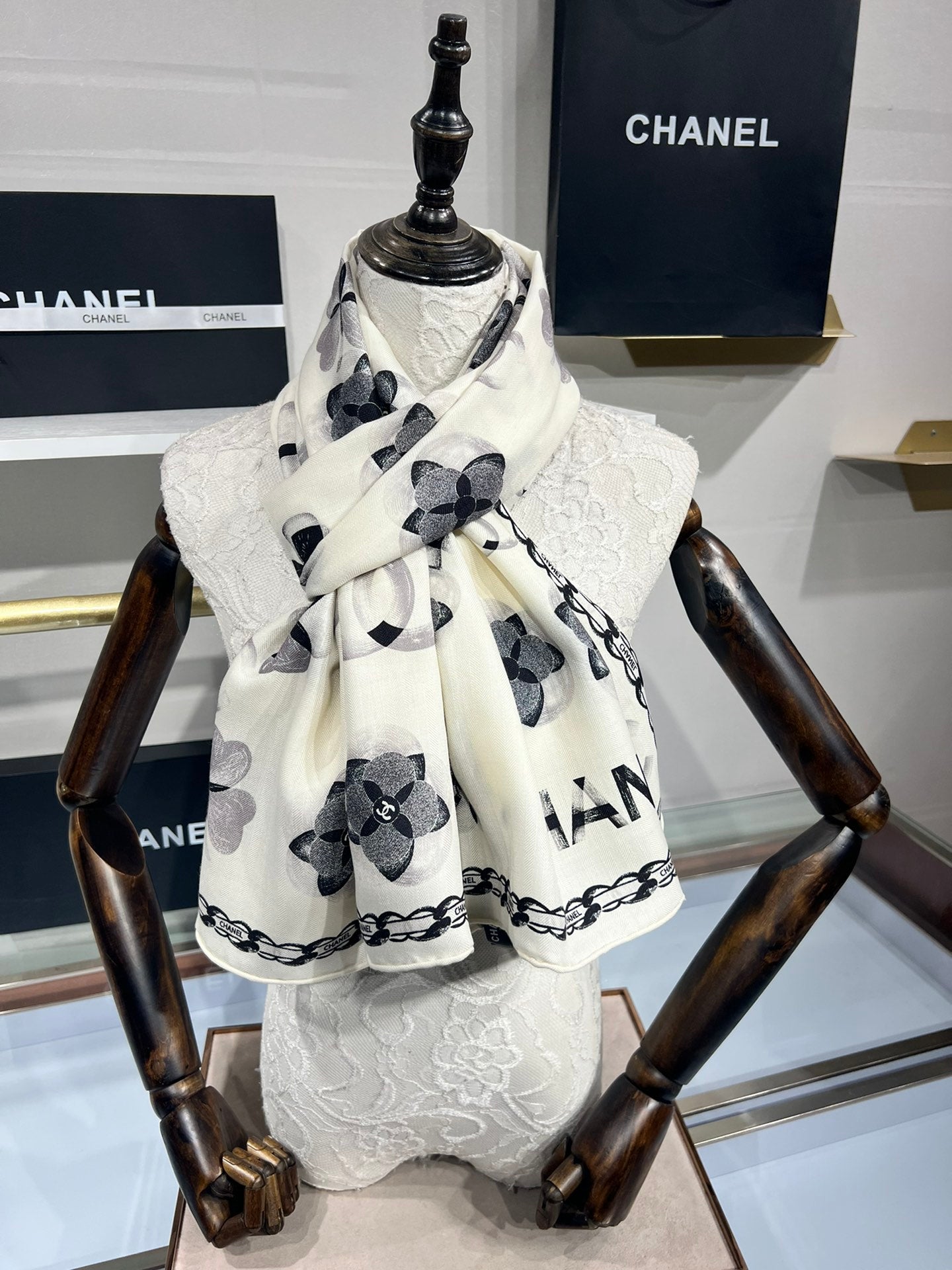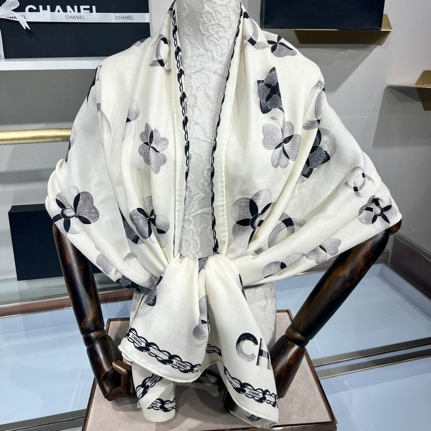 CC Scarf 185 CM In White Black Cashmere Silk 413589