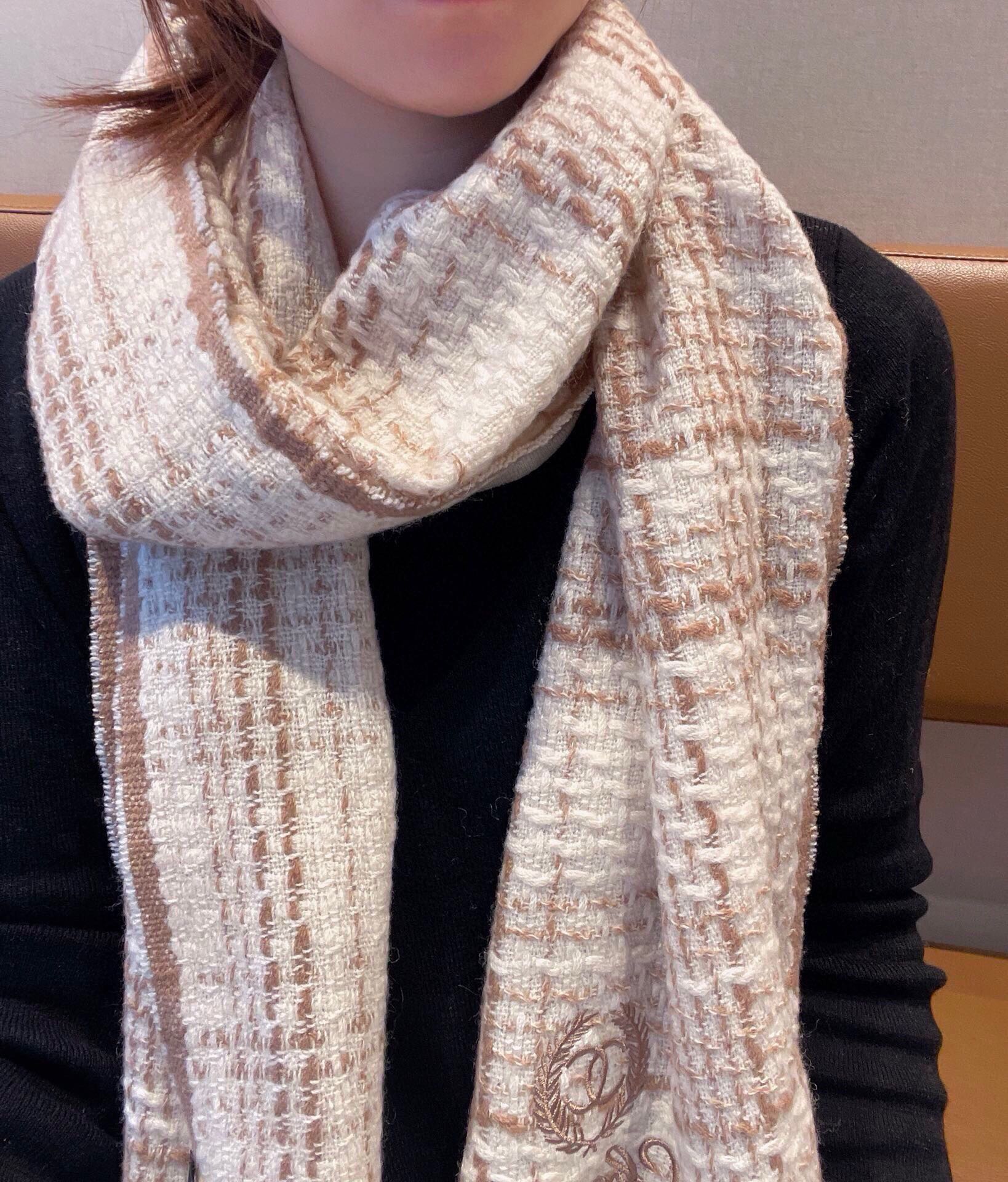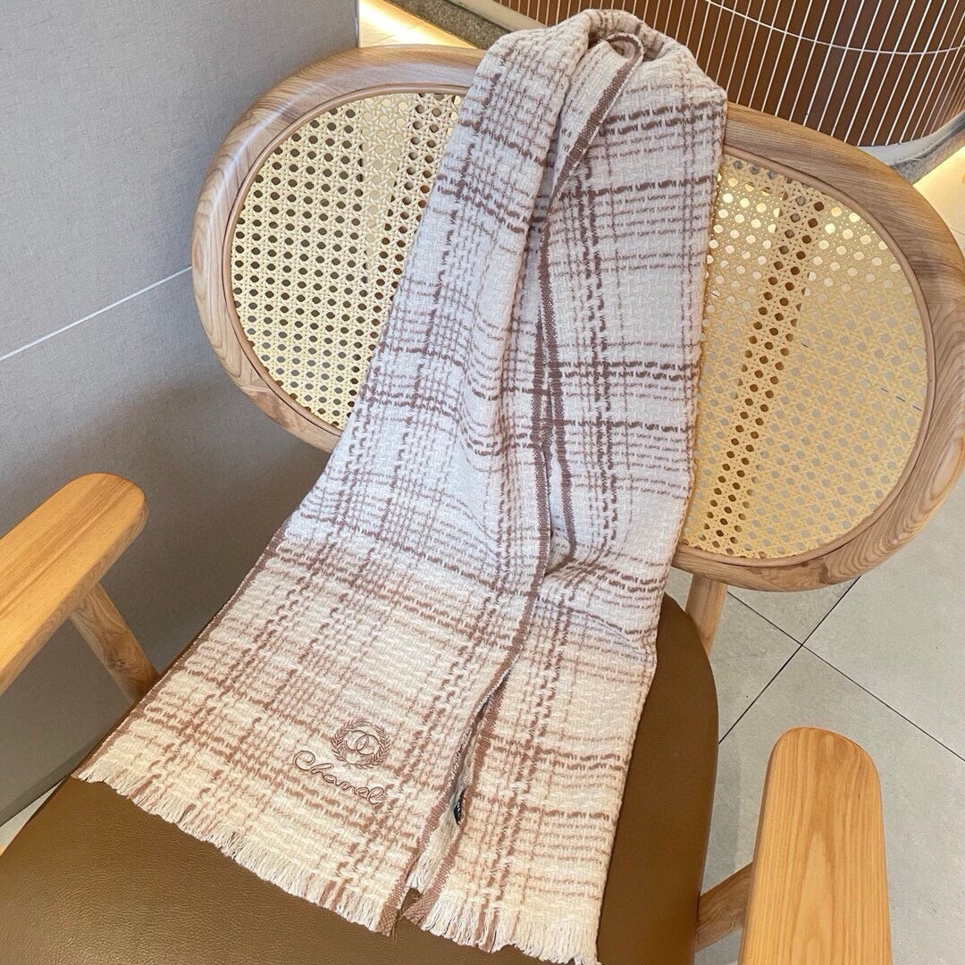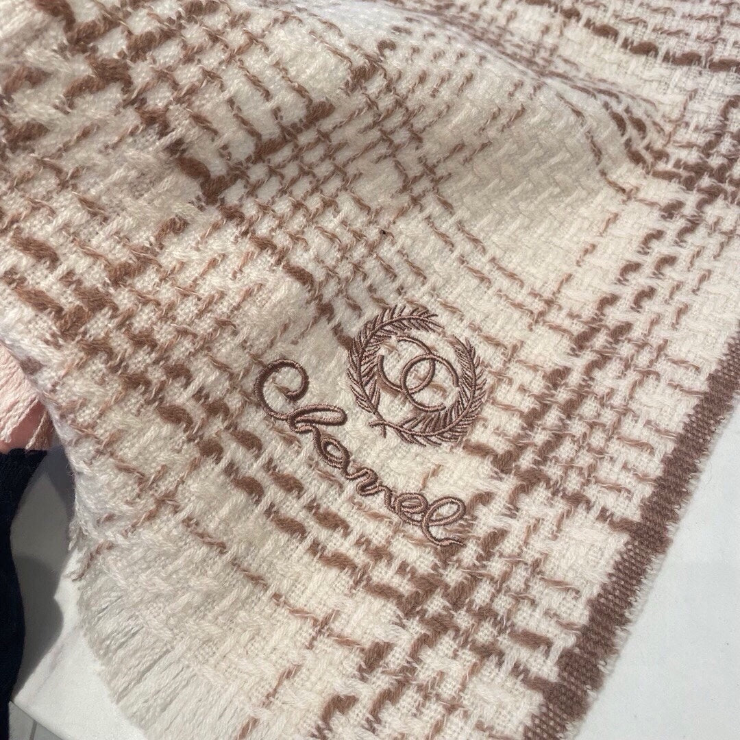 CC Scarf 186 CM In White With Brown Stripes Fleece Wool 416926