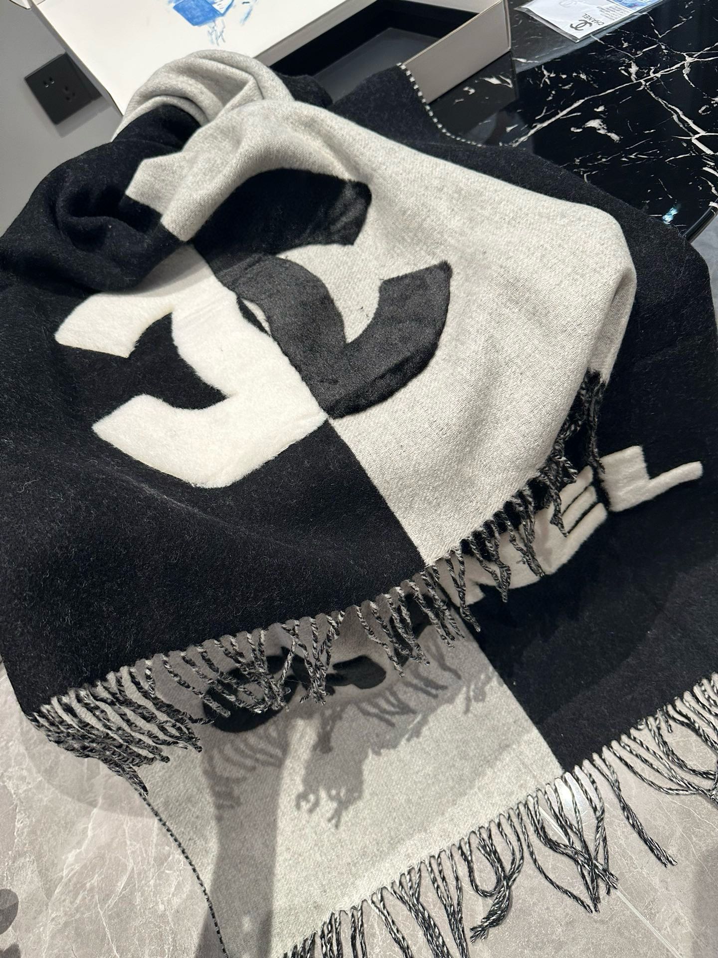 CC Scarf 200 CM In Black Mix White Fleece Wool 405155