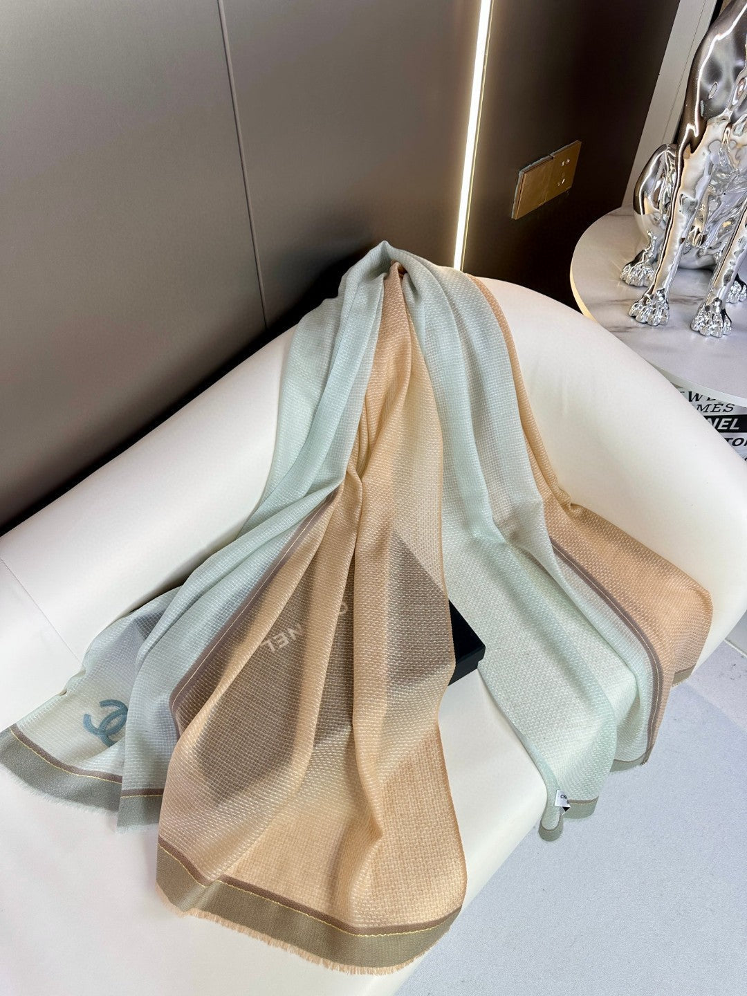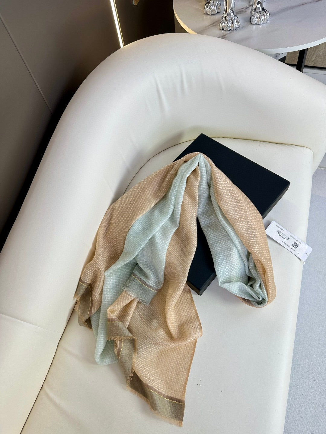 CC Scarf 200 CM In Grey Blue Mix Beige Cashmere Silk 390938