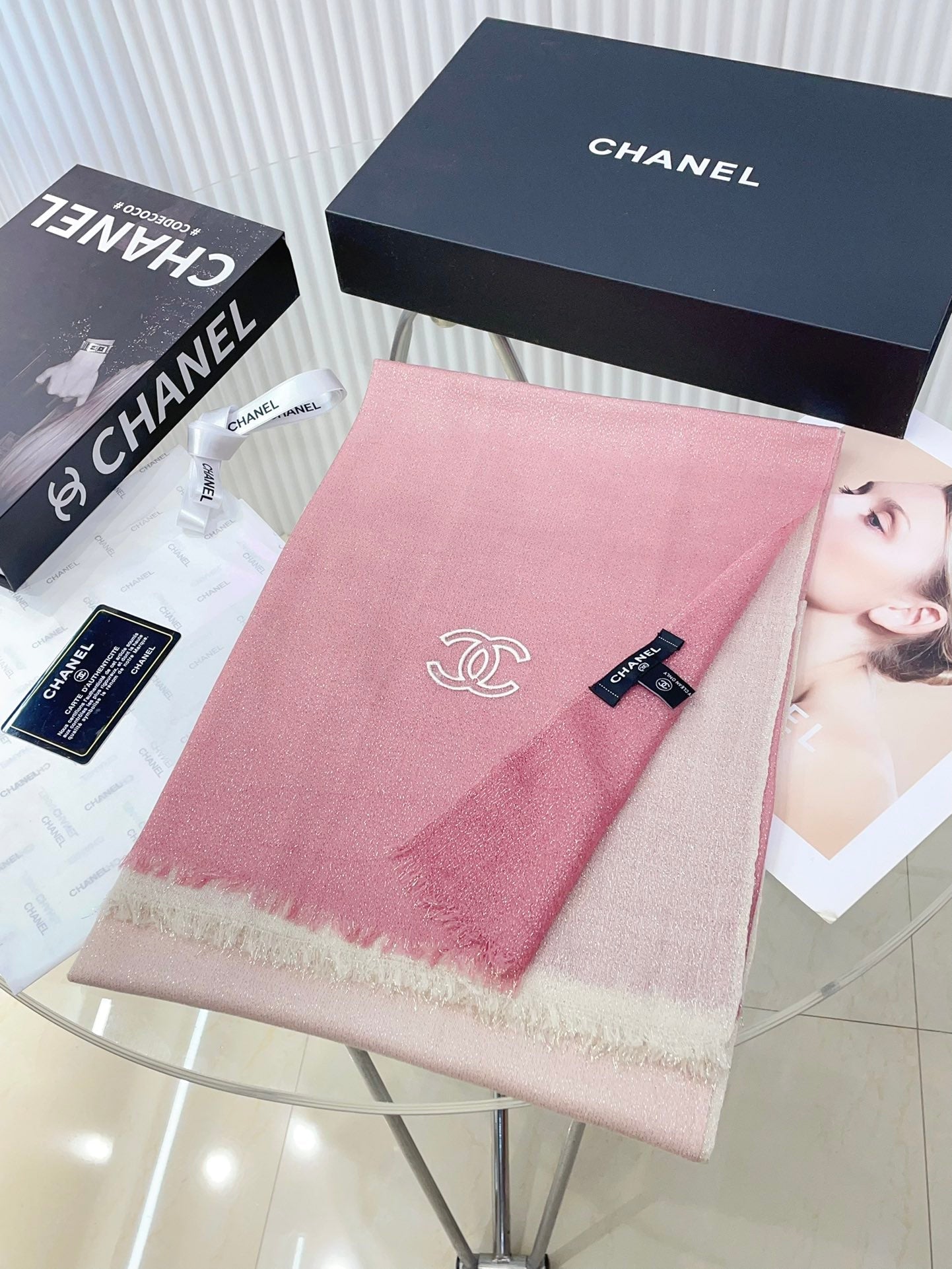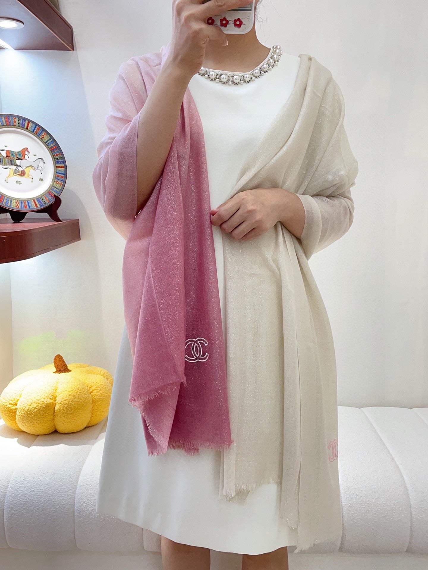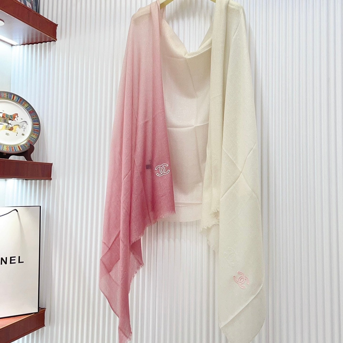 CC Scarf 200 CM In Light Pink Mix White Linen Fabric 249938