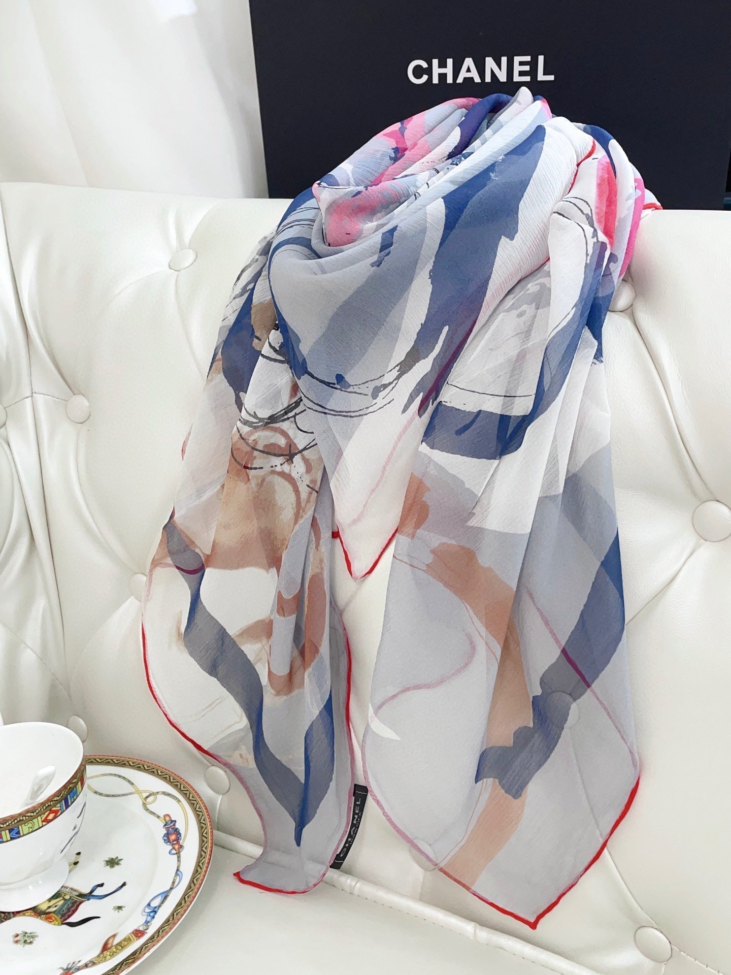 CC Square Scarf 110 CM In Colorful Shunyu Georgette Silk 198580