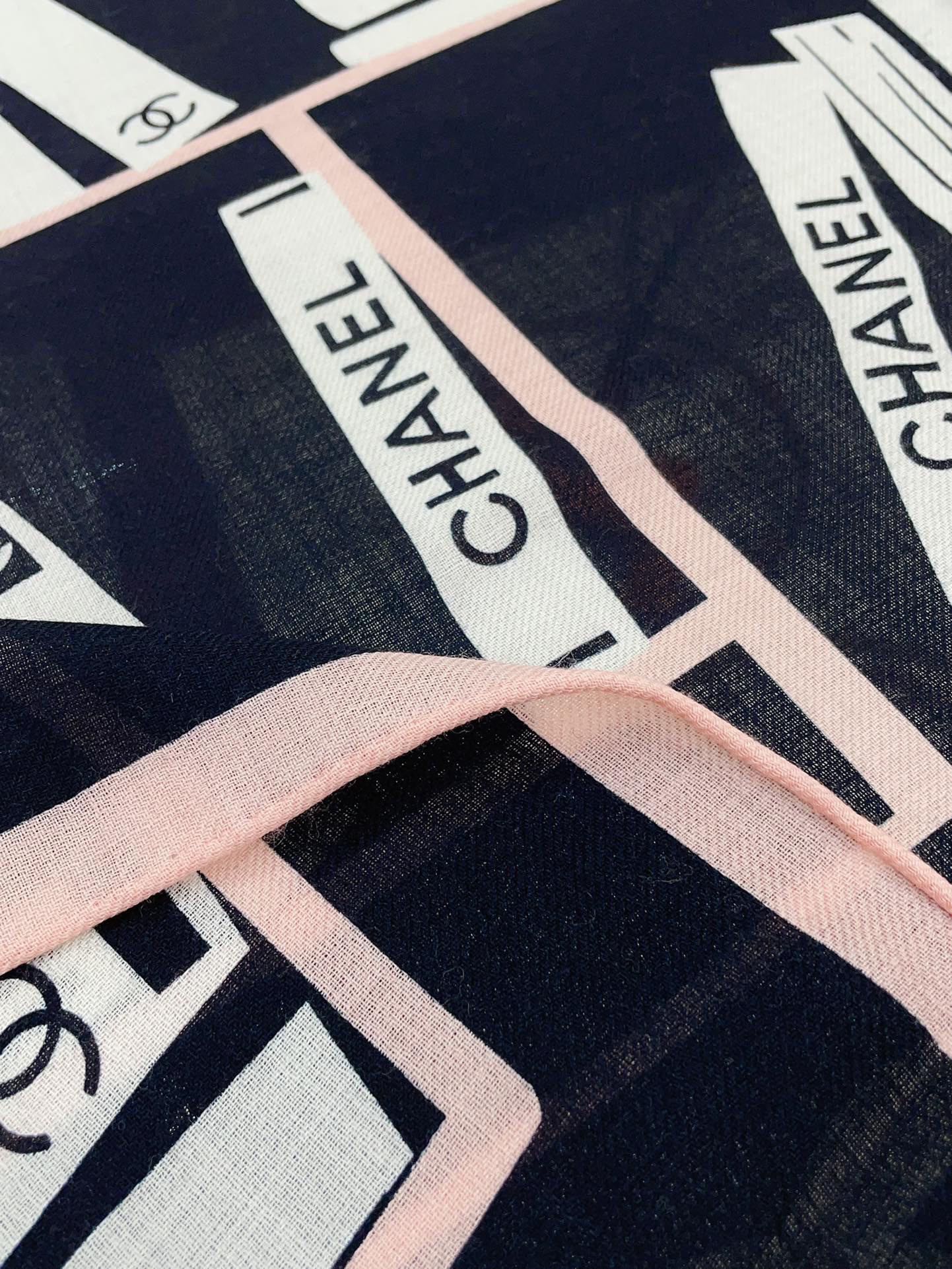 CC Square Scarf 140 CM In Black White Mix Pink Silk 422756