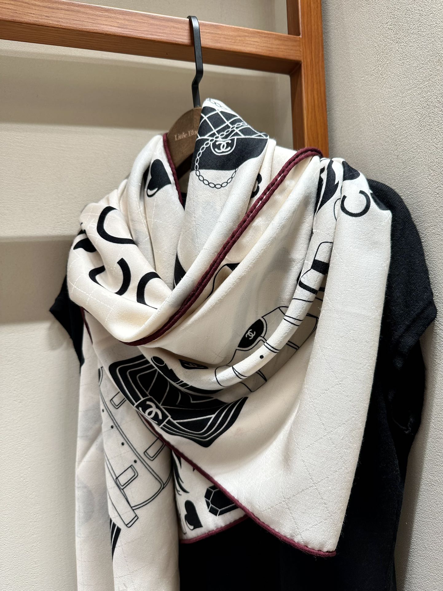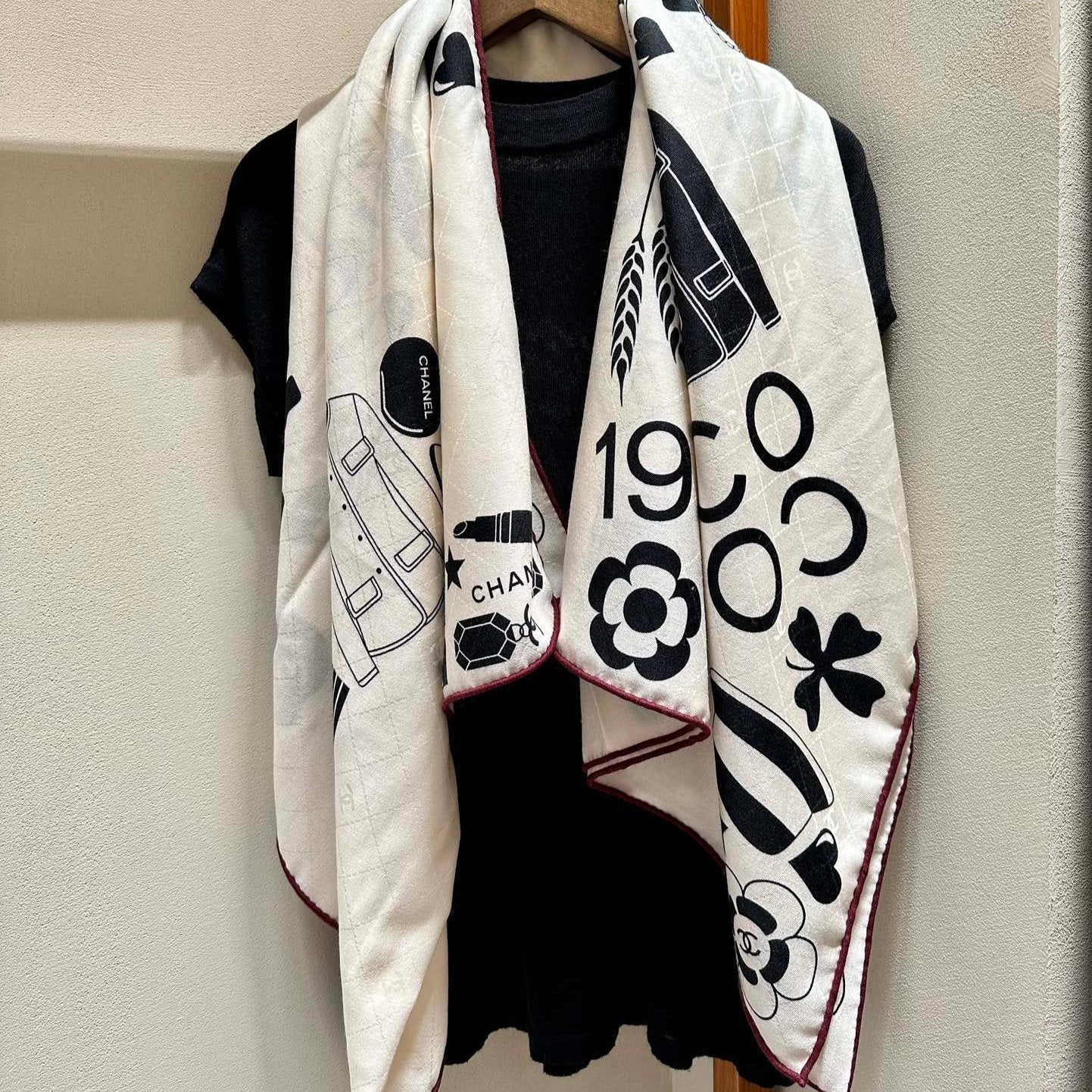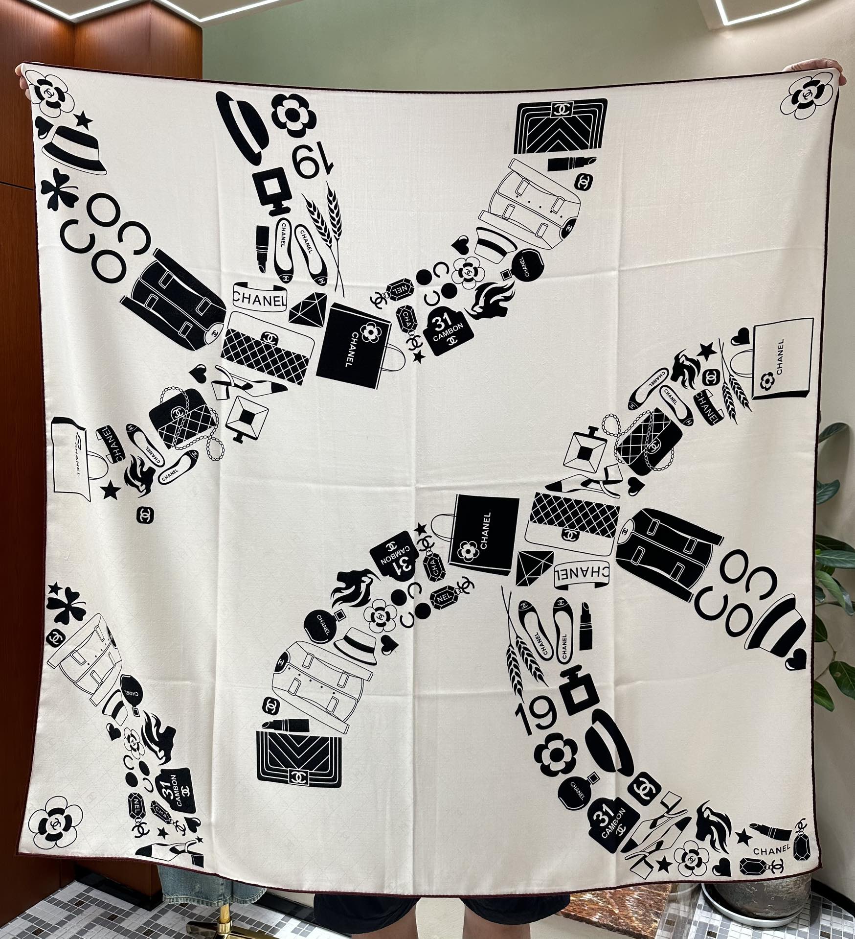 CC Square Scarf 140 CM In White Black Silk Cashmere 413676