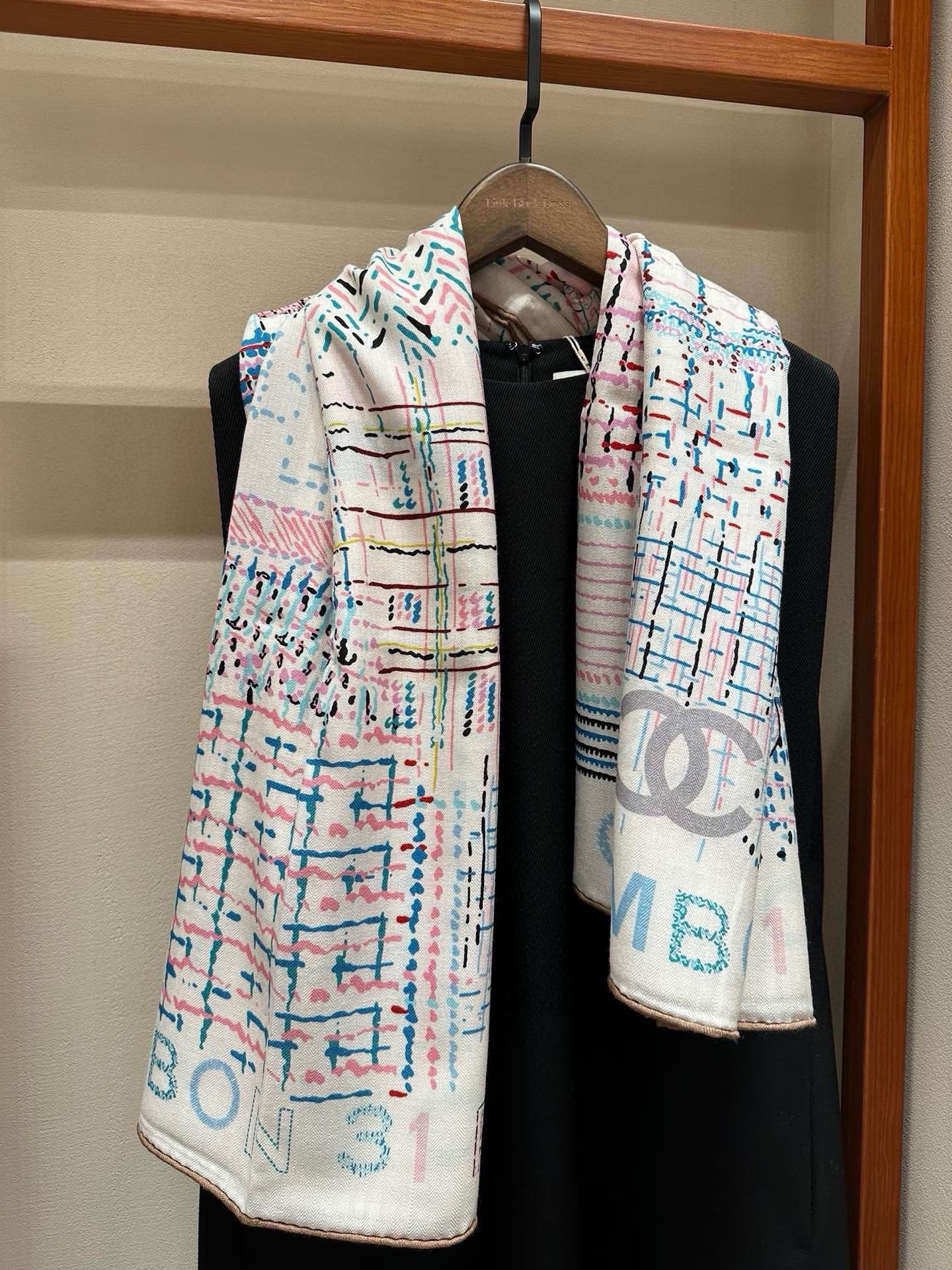 CC Square Scarf 140 CM In White Colorful Cashmere 182446