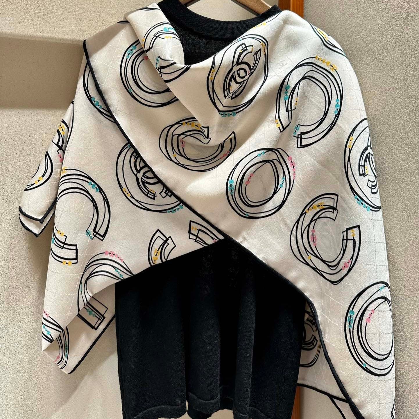 CC Square Scarf 140 CM In White Silk Cashmere 420130