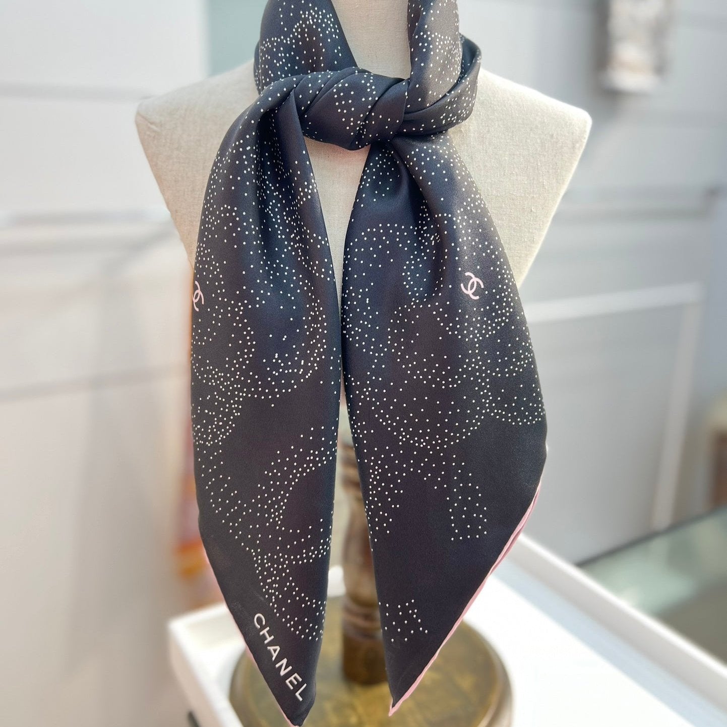 CC Square Scarf 90 CM In Black Camellia Polka Dot Silk 288736