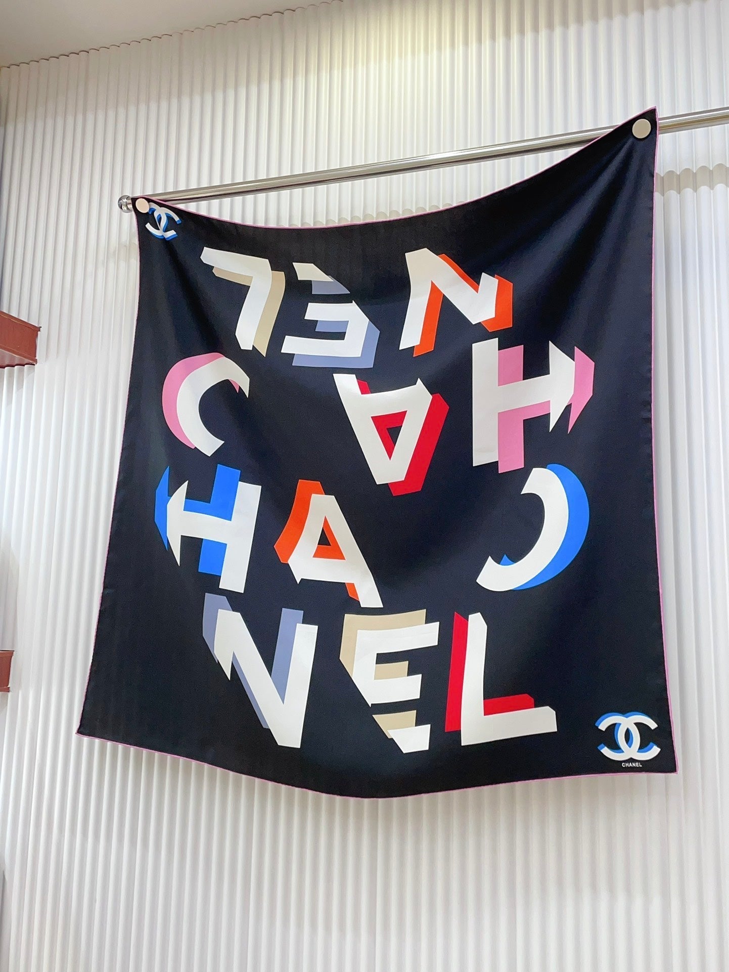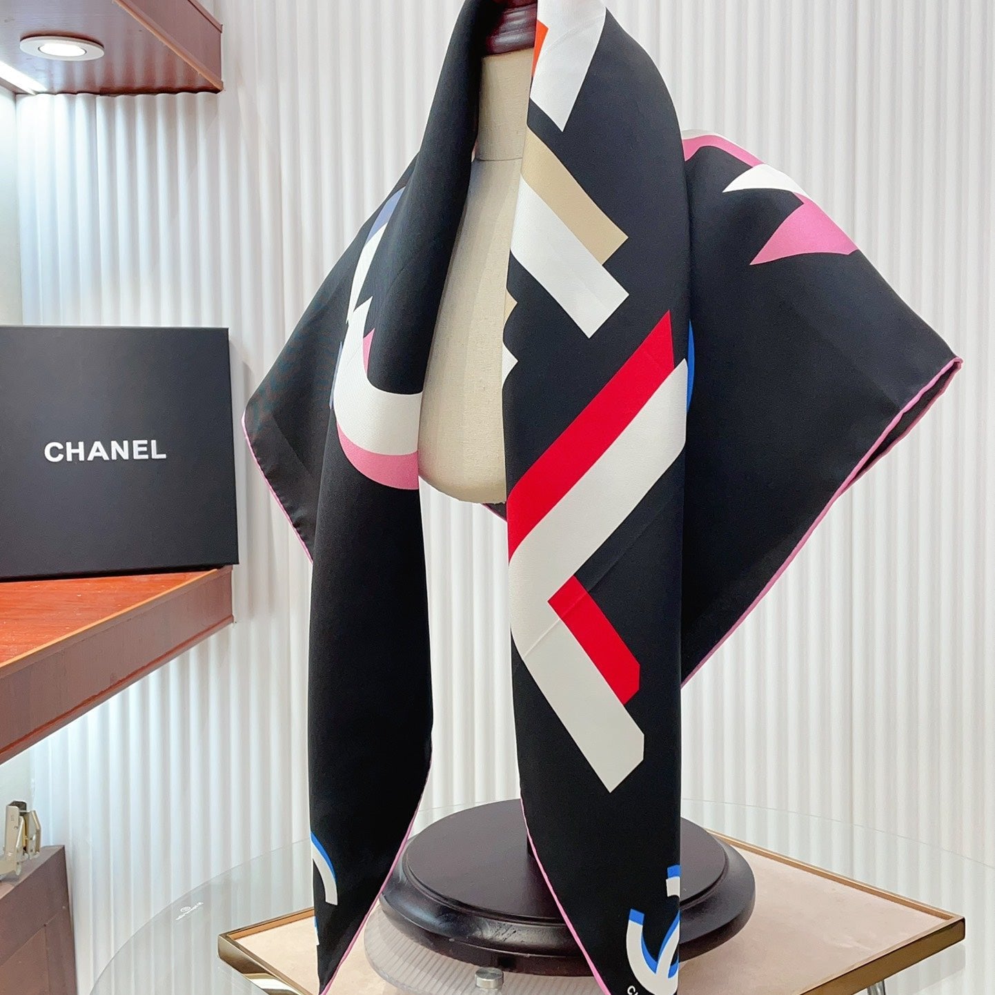 CC Square Scarf 90 CM In Black Colorful Silk Twill 206468