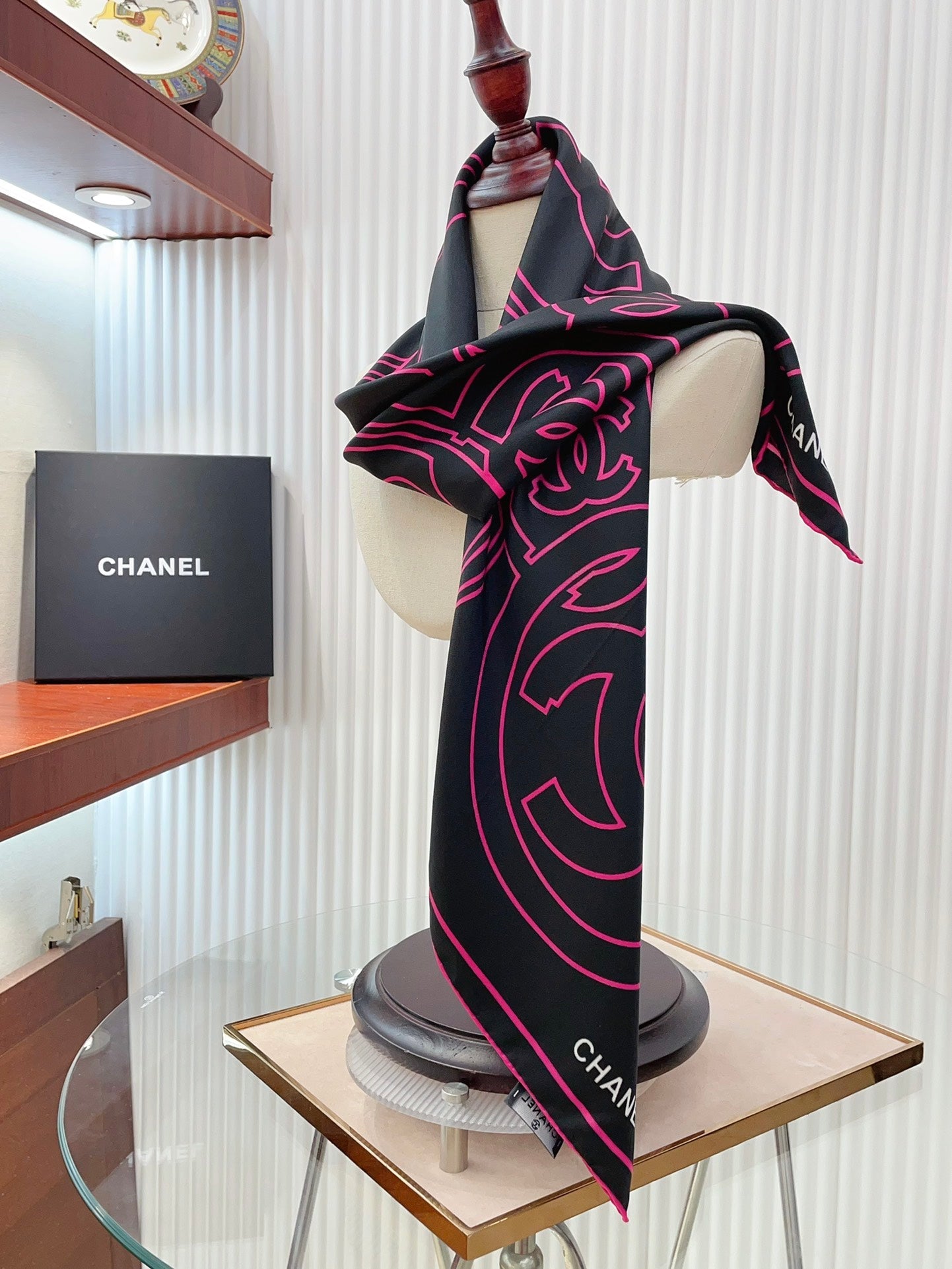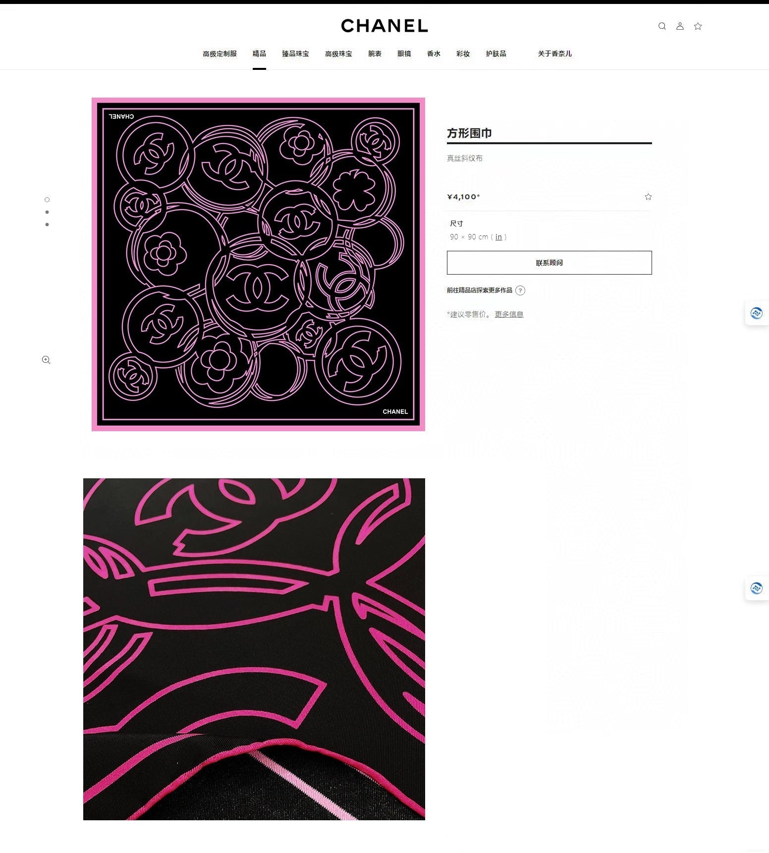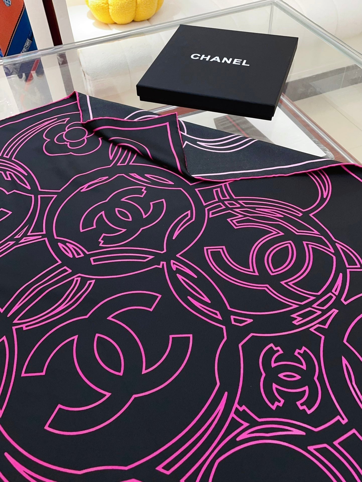 CC Square Scarf 90 CM In Black Mix Pink Silk Twill 187438