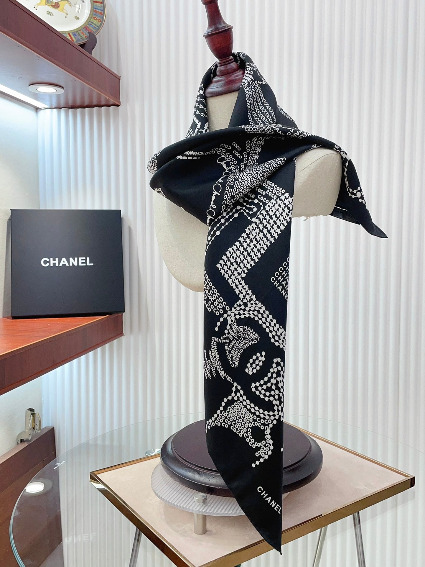 CC Square Scarf 90 CM In Black White Silk Twill 198570